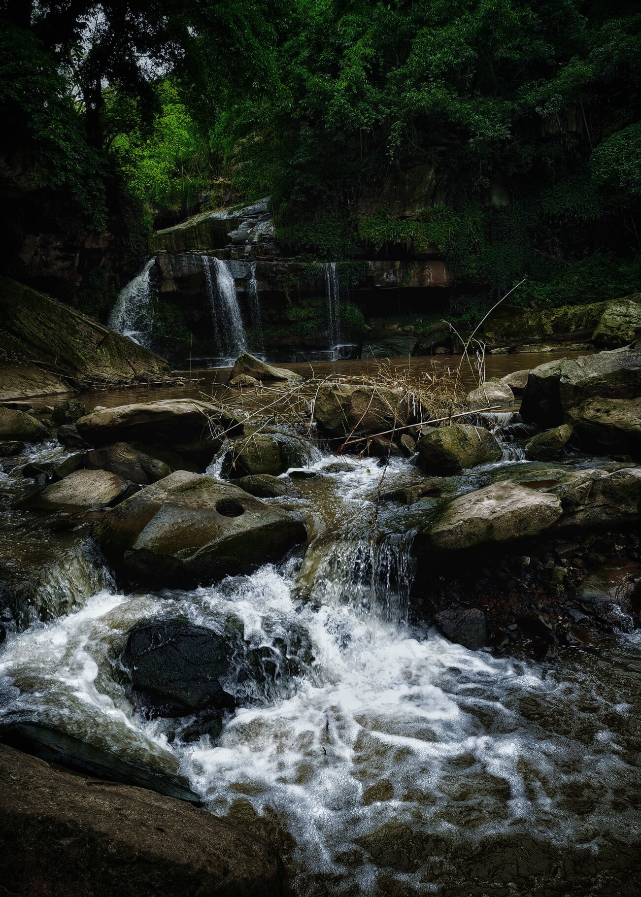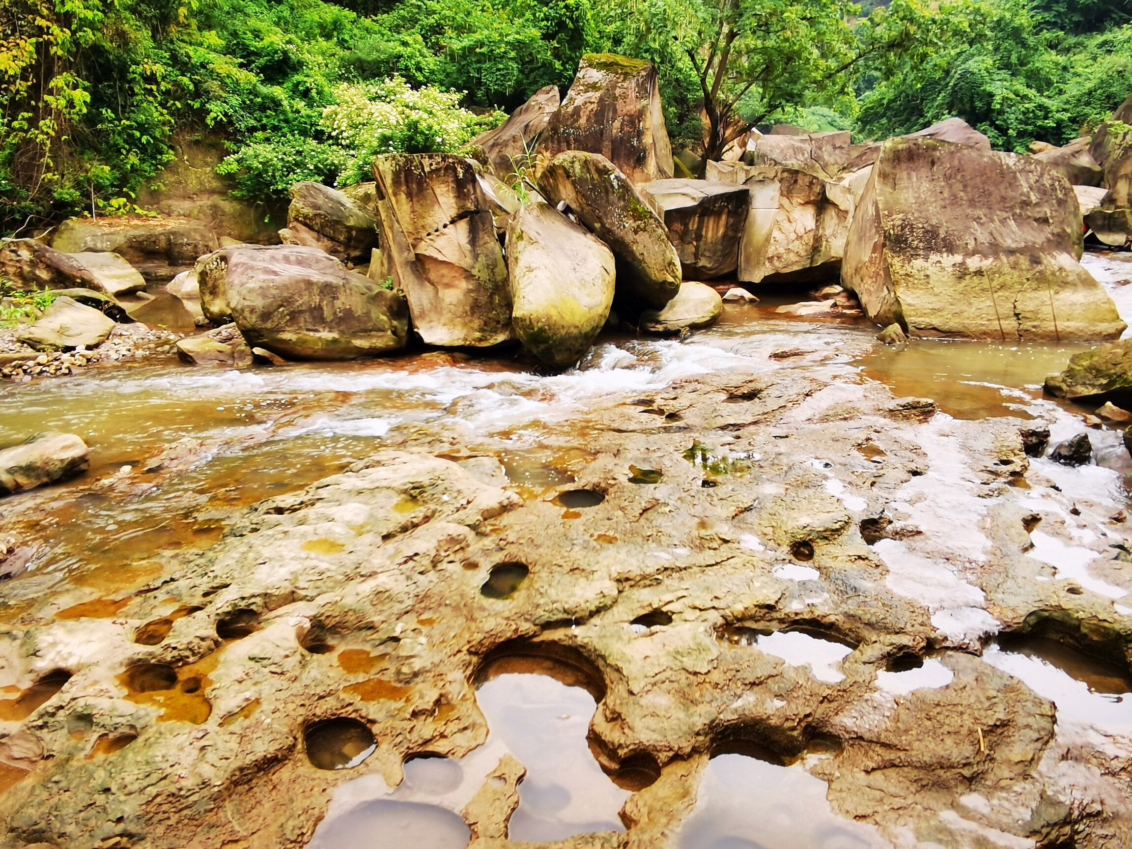 两河口瀑布,这个景点全靠运气才可以看到,水是上面电站在控制。干了件哈事爬到沟底去差一点没有上来