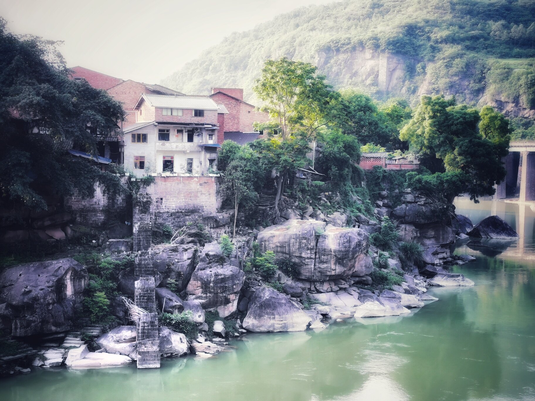 屁爬骨越来越痛,下车都困难,直接杀到盖石去看一下刘德华曾经工作过的桥。在桥上感觉到了刘德华扮演的那个人的感受-骑车骑久了屁股疼