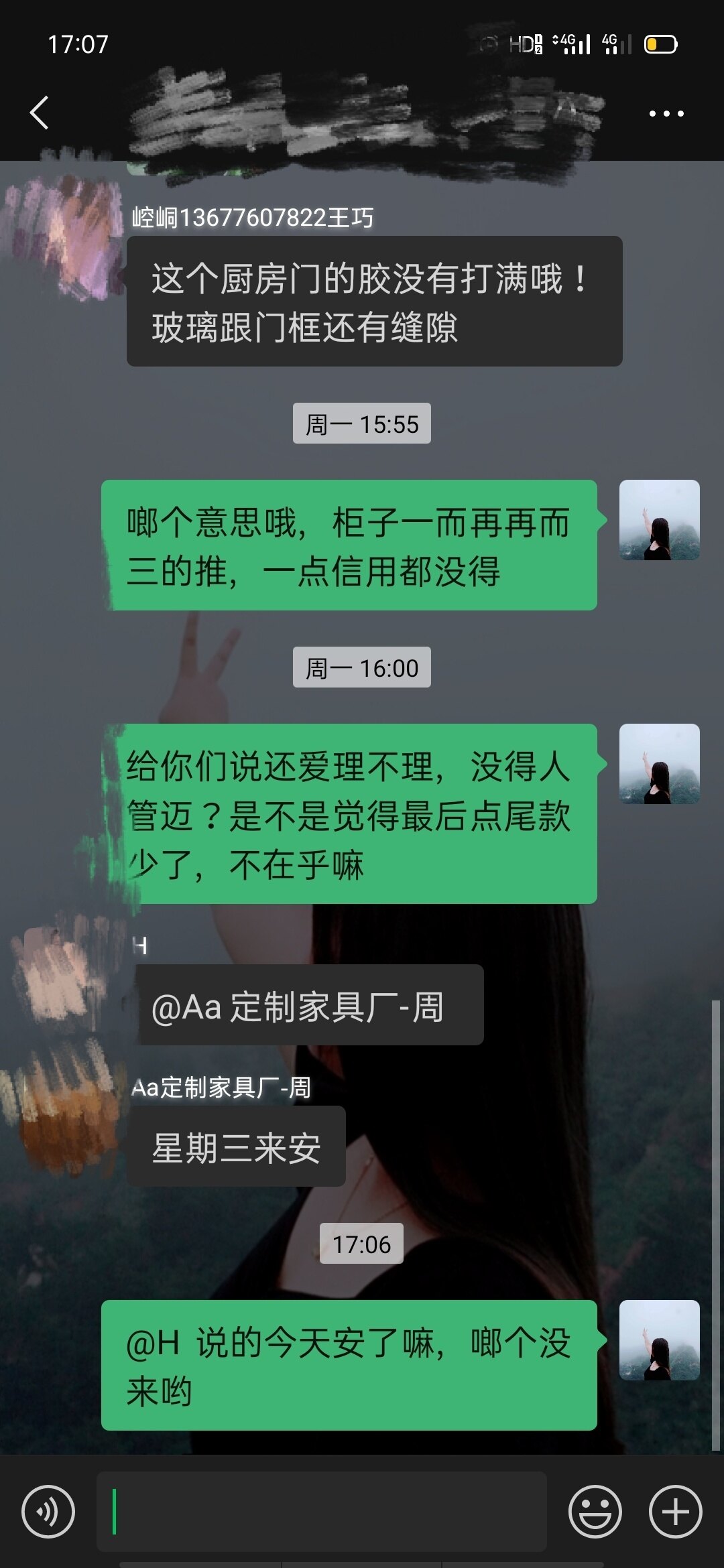 我家是佳装惠第一家开工装修的,是作为样板房最早开工的,到5月26日止还在等安装衣柜,,订制衣柜做了整整一个月,看来只有等装完了扯皮。