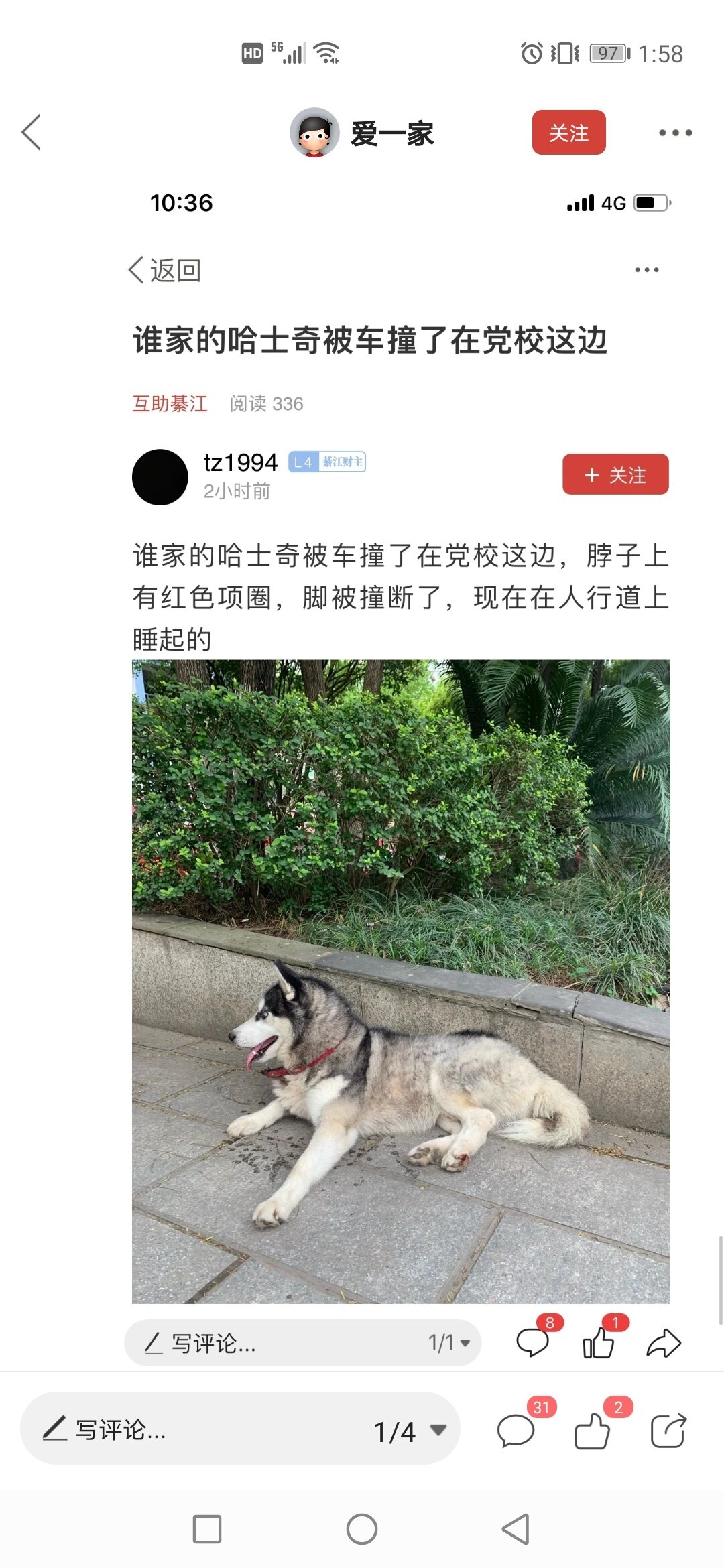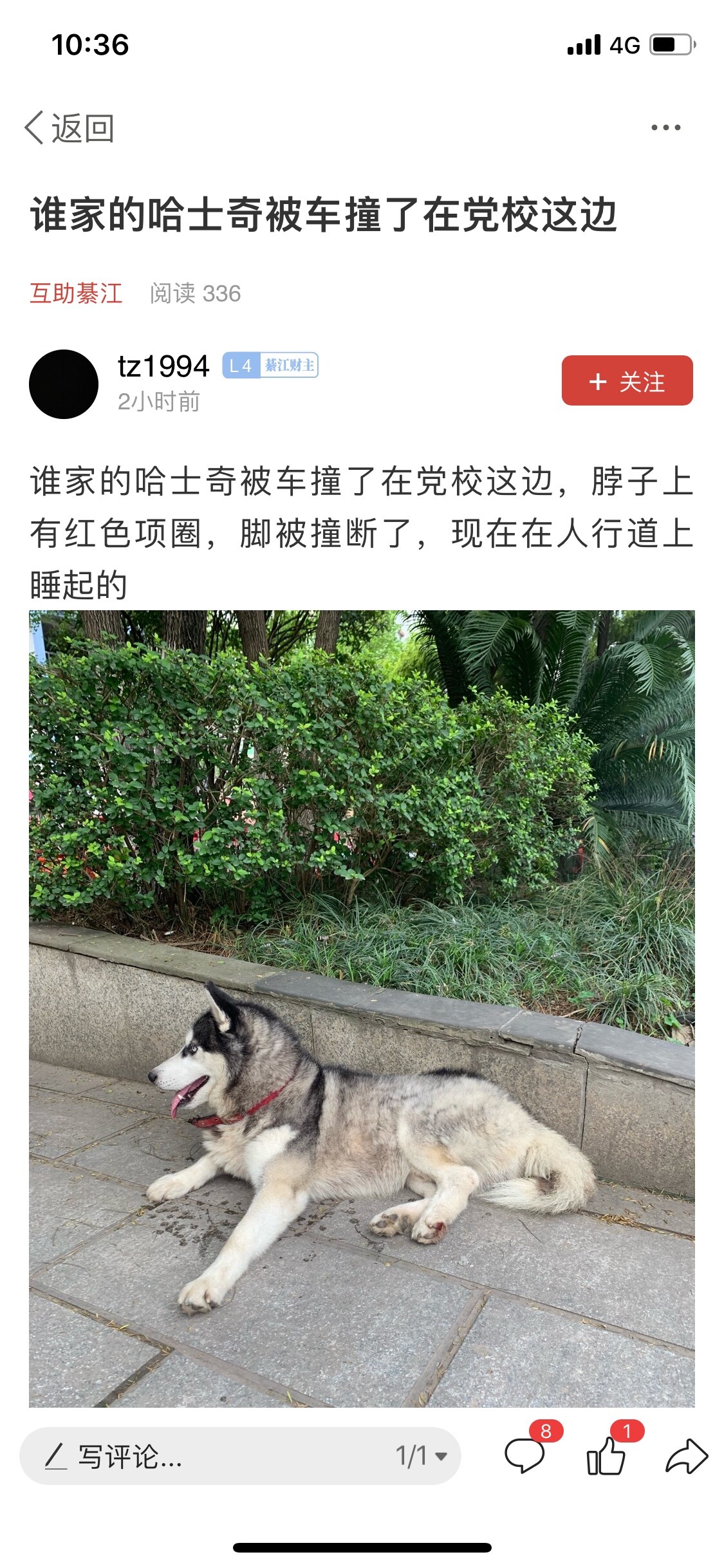 不是刚刚说在党校给撞断腿了吗 是不是你的二哈