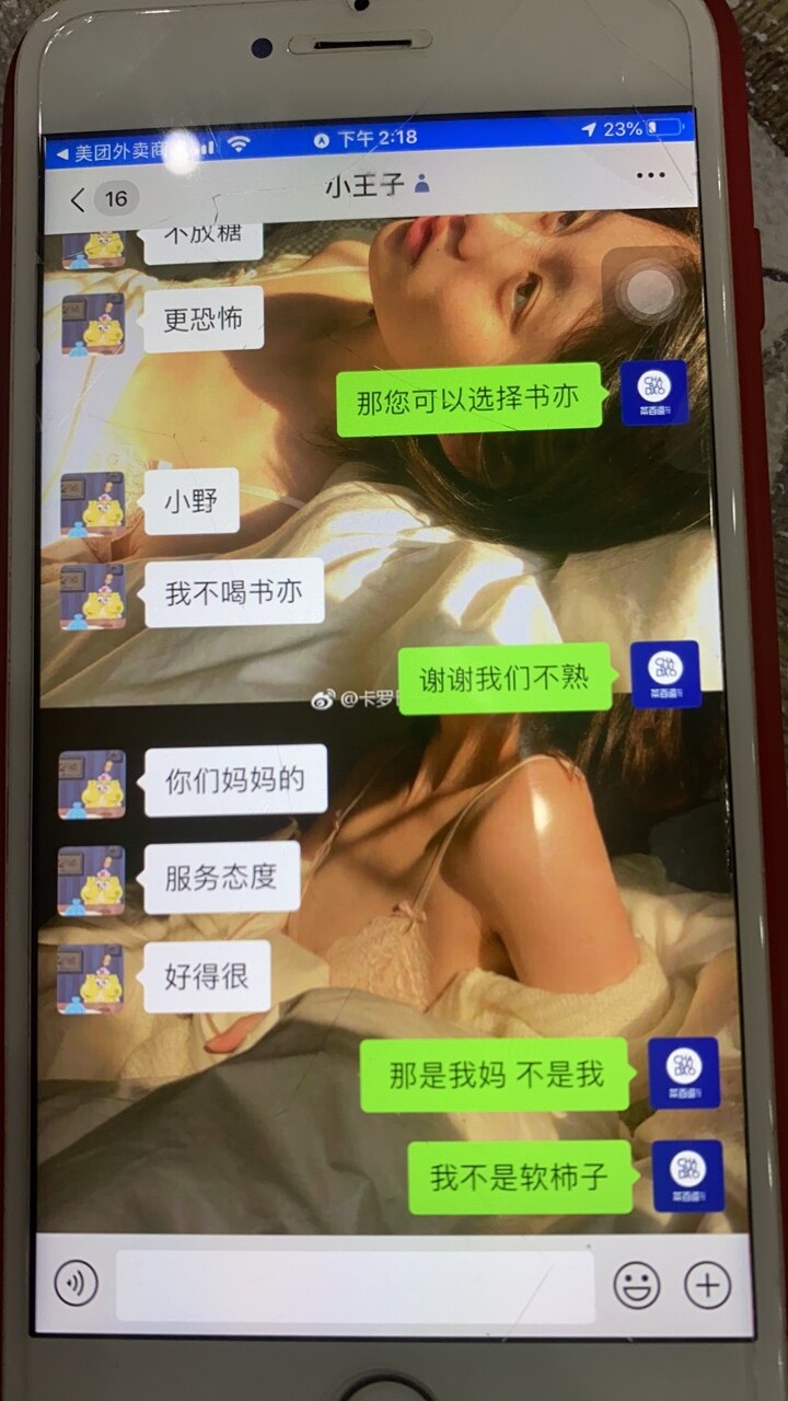 不要觉得你改个名字,换个头像,换个地方我就不认识你了。我就不认识你了,你这种差劲的打字方式,也只有你这种人了。我就不是卖奶茶给你怎么了?你高兴差评曝光我怕你?你也是很**了。颇图?来证据?来嘛。我还有视频。您可是真倒霉,每次你的外卖都做错?我对你态度不好?你活该,你不配!!!你做个人吧。綦江就这么小,小心si