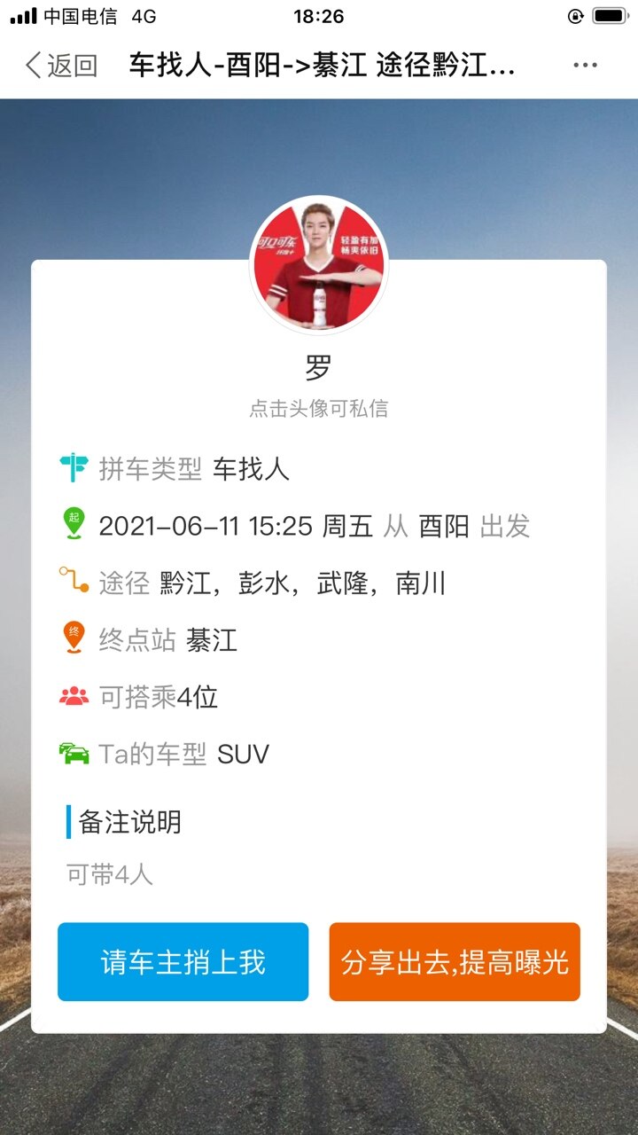 车找人周五酉阳回綦江有没有顺路的