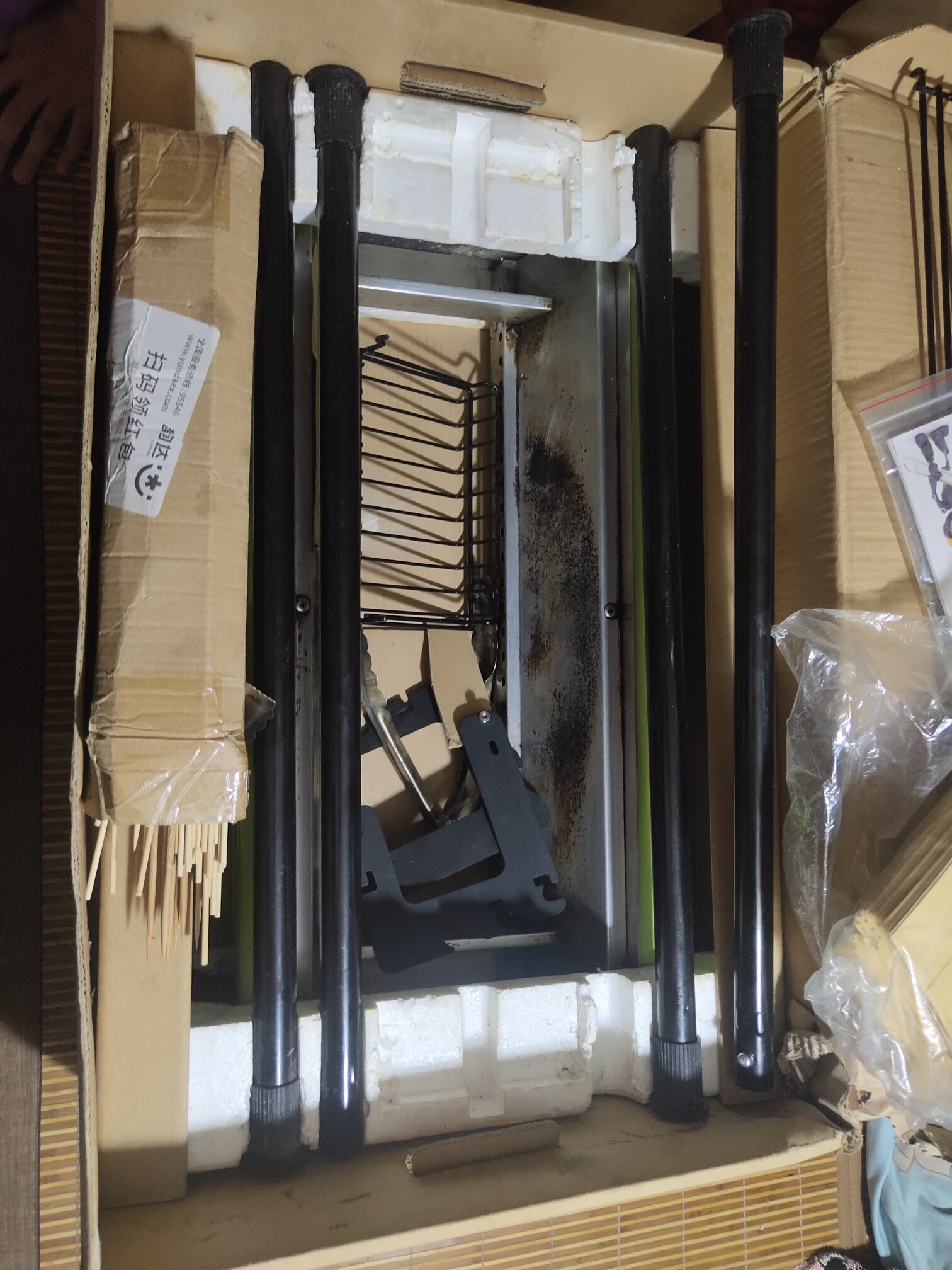 抽拉展柜1.5×1.5×0.6,有2个,家用烧烤炉一个。<br><br>