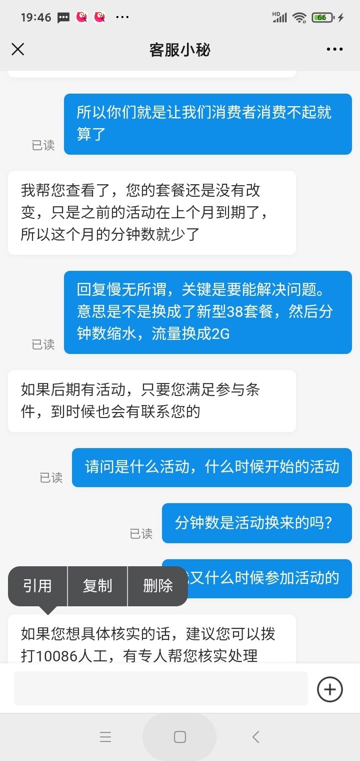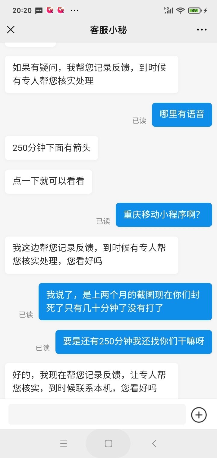 登陆10086问人工客服,说我一直都是那么多分钟,简直就是胡扯。我说我以前不是那么点分钟数,她说一直都是那么多。要么就叫我截图,截图给她了,叫我点开看,截图点得开吗?