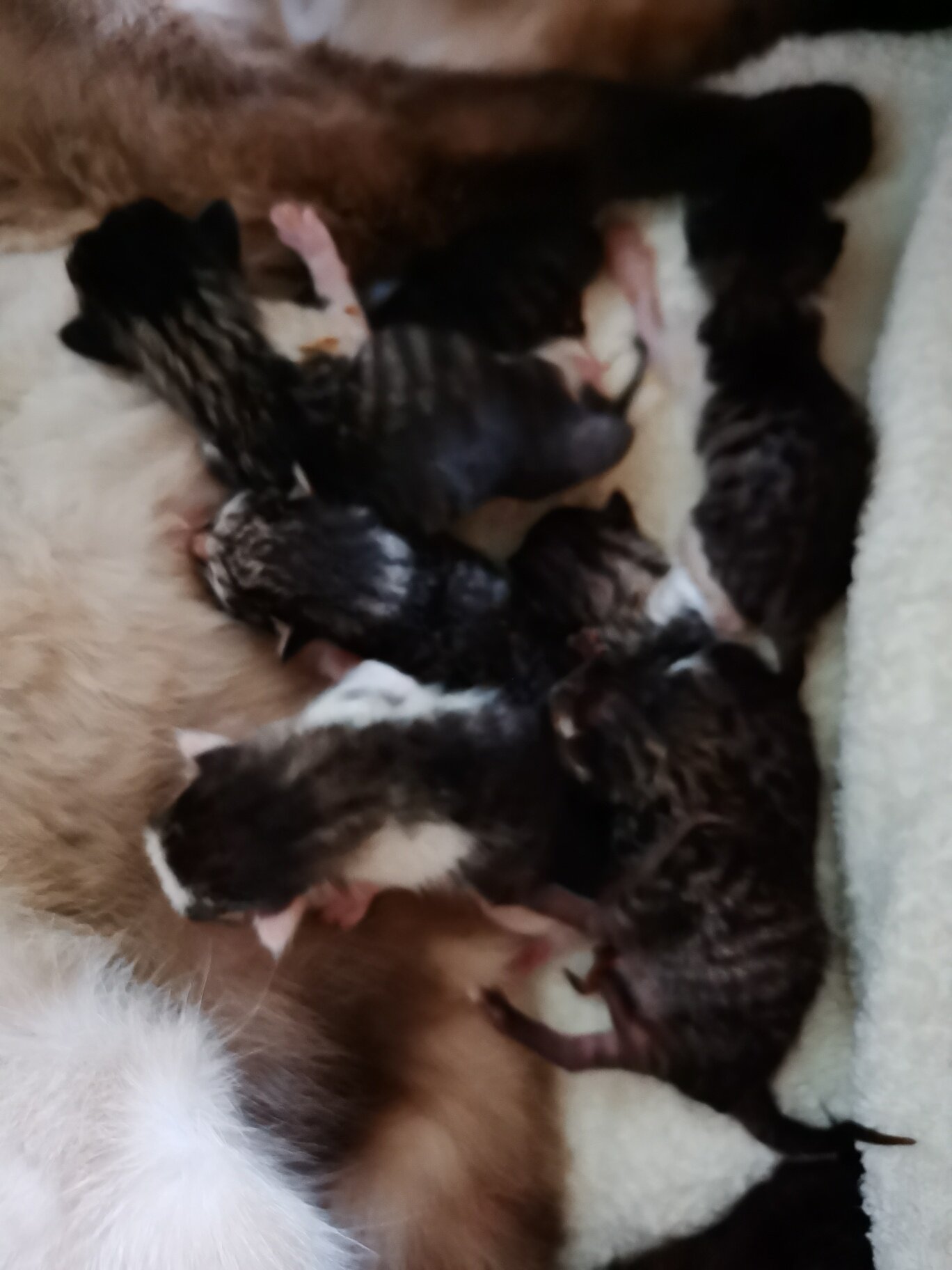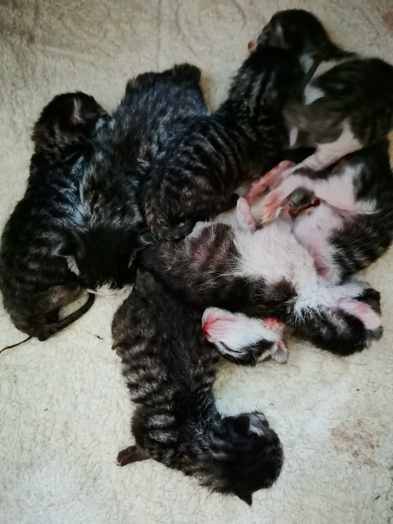 爱猫的朋友们,我家有一窝小猫还没睁眼,喜欢猫想领养的留言吧,先到先得