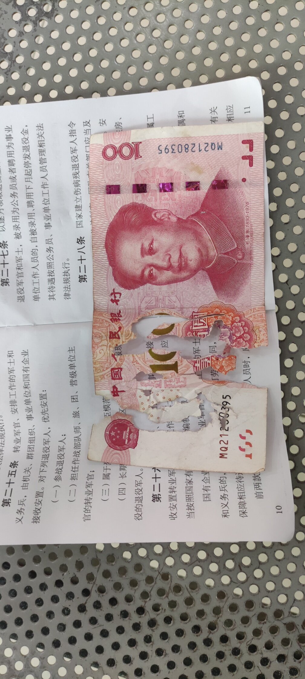 人民币被耗子咬烂了求助