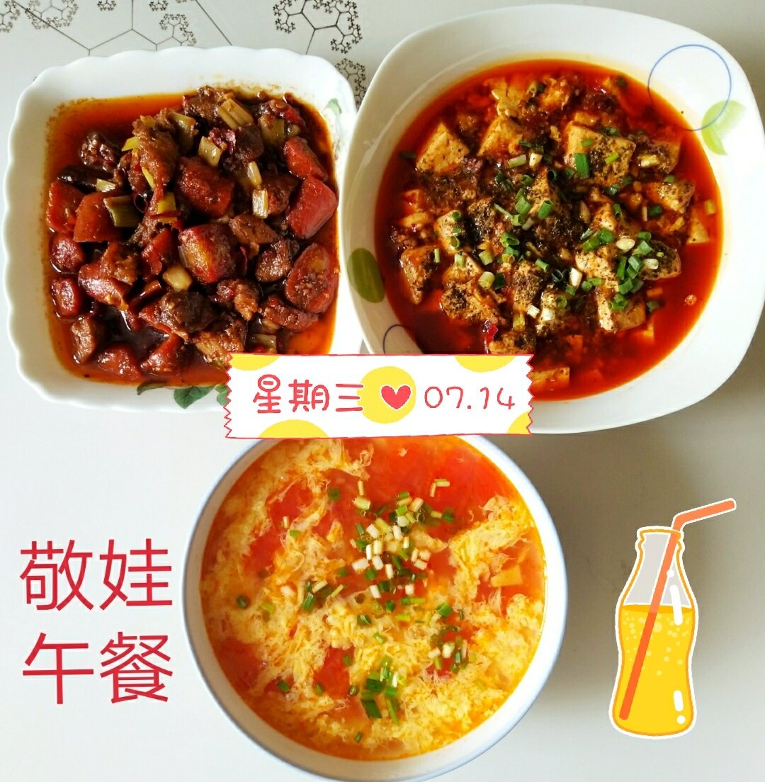 生活是美好的,不管富贵与贫穷,不管咋样!自己的生活都得过得杠杠滴!简单生活不将就!麻婆豆腐有滋有味,番茄鸭蛋汤可以与乡村基的番茄汤比美!生活真的很美!