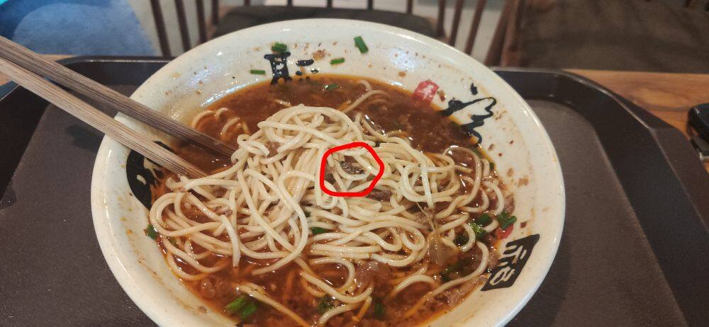 2021年7月19日,本人与女友前往綦江地下通道(海鲜爱上面)店铺吃饭,吃到一半女友发现面里有一被煮烂的虫子,我让女友端到店铺问个理,店铺回答道:这可能是空调吹到碗里的。虫子都被煮烂了还说是被吹进去的简直无语,店铺没有给予赔偿以及歉意,表示无所谓。