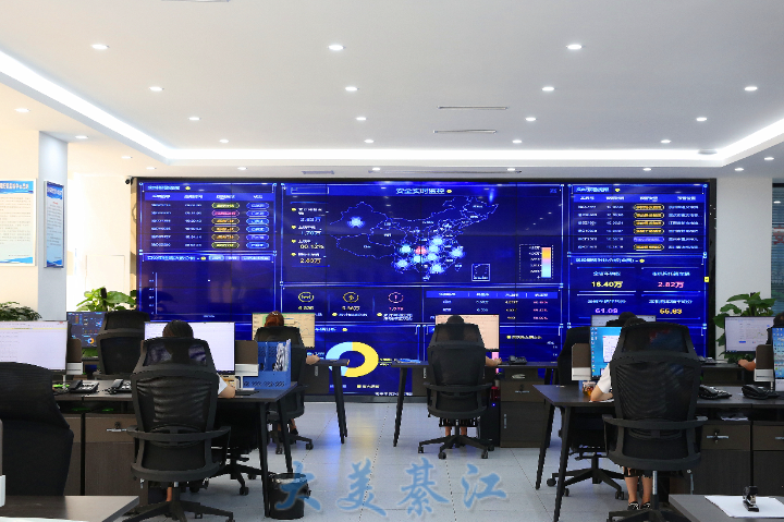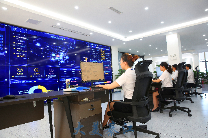 ▲工作人员正在监控中心查看货车货运情况