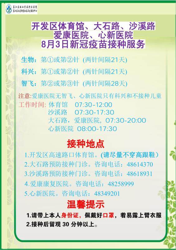 明天綦江有没有智飞的疫苗 ,在哪里可以打 。
