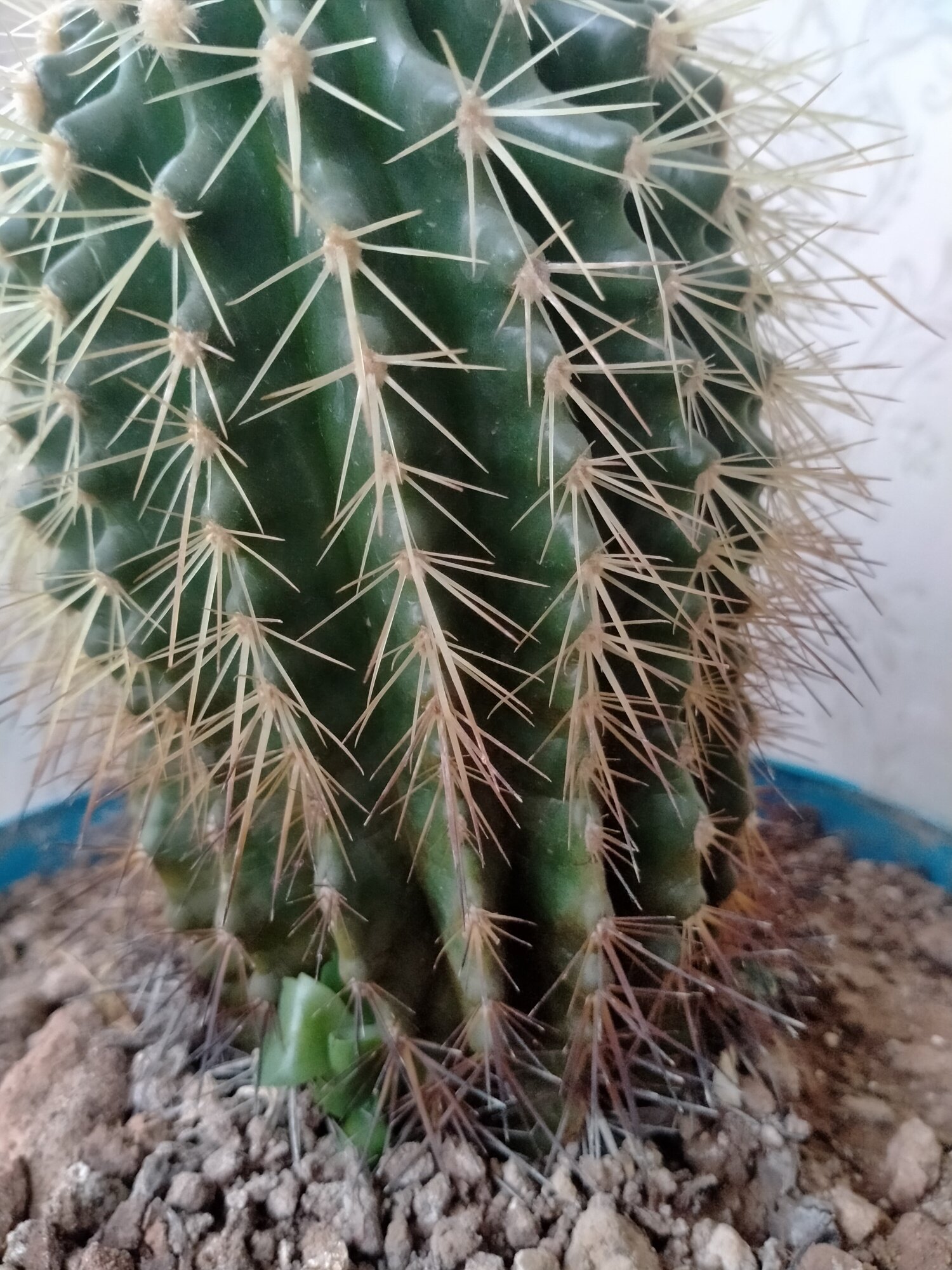 我看百度说这是正常的,仙人球本来就有叶子,为了避免水分蒸发,叶子变成了刺。水分充足,就长叶子了