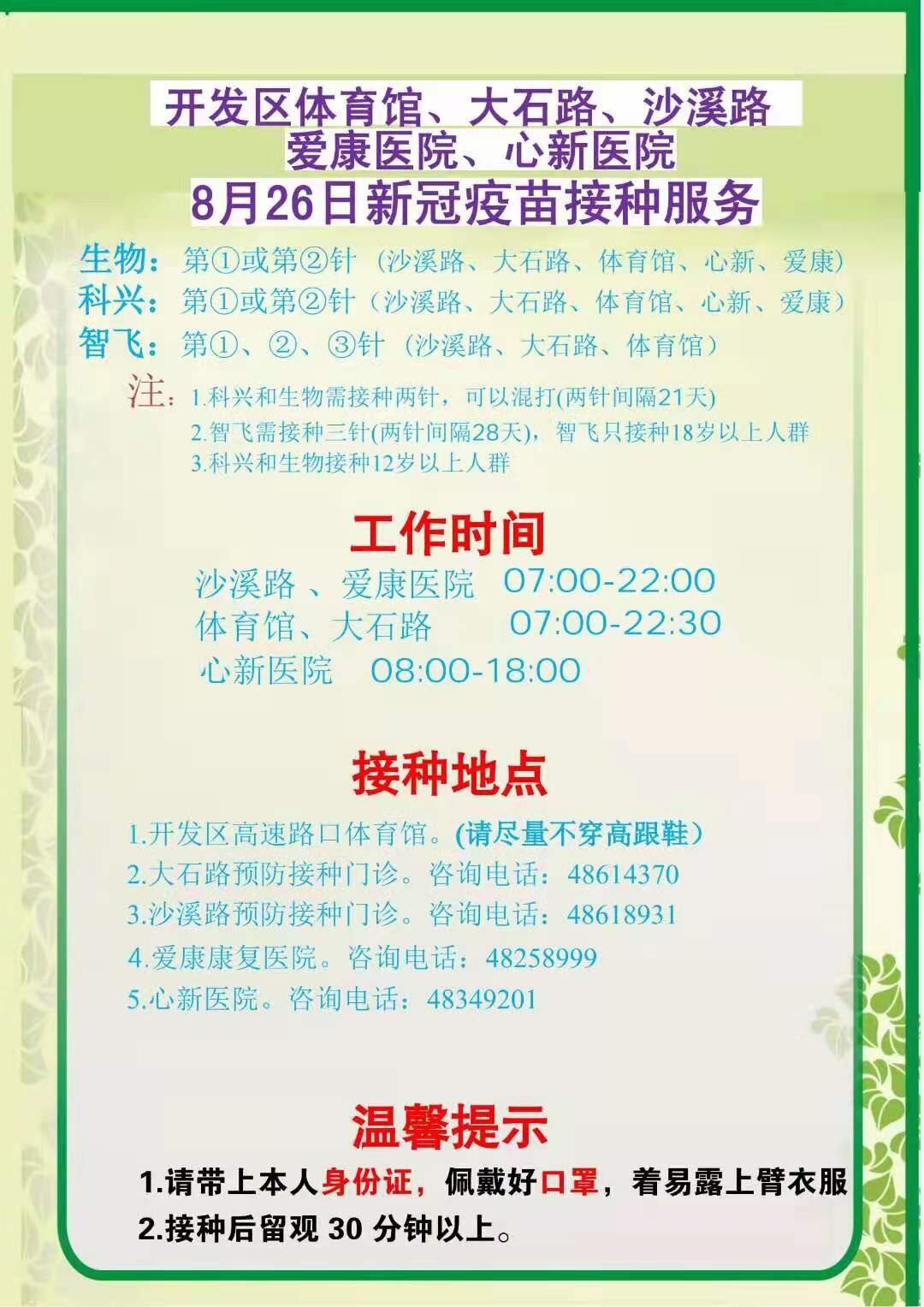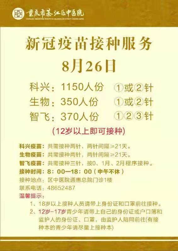 綦江8月26日疫苗接种信息