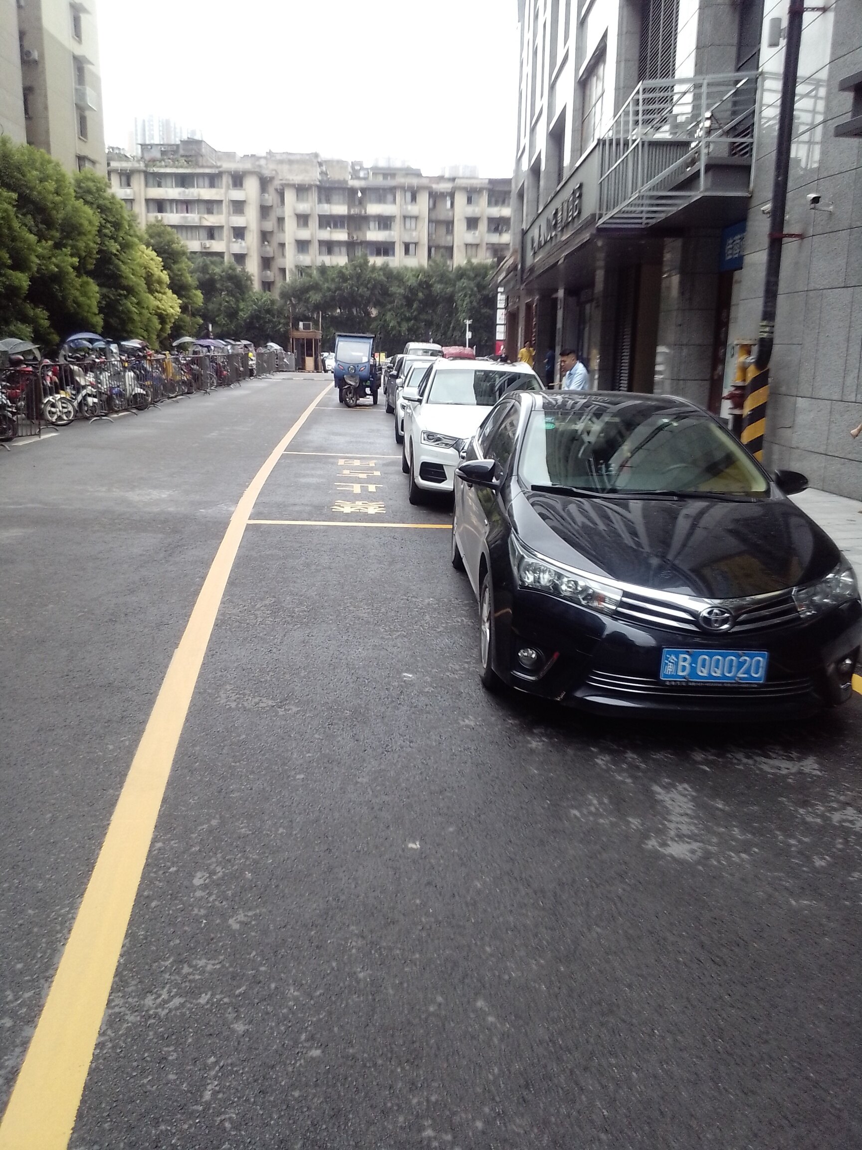 这车停的漂亮,让别个怎么管理哦。车又不能锁车,锁了还犯法