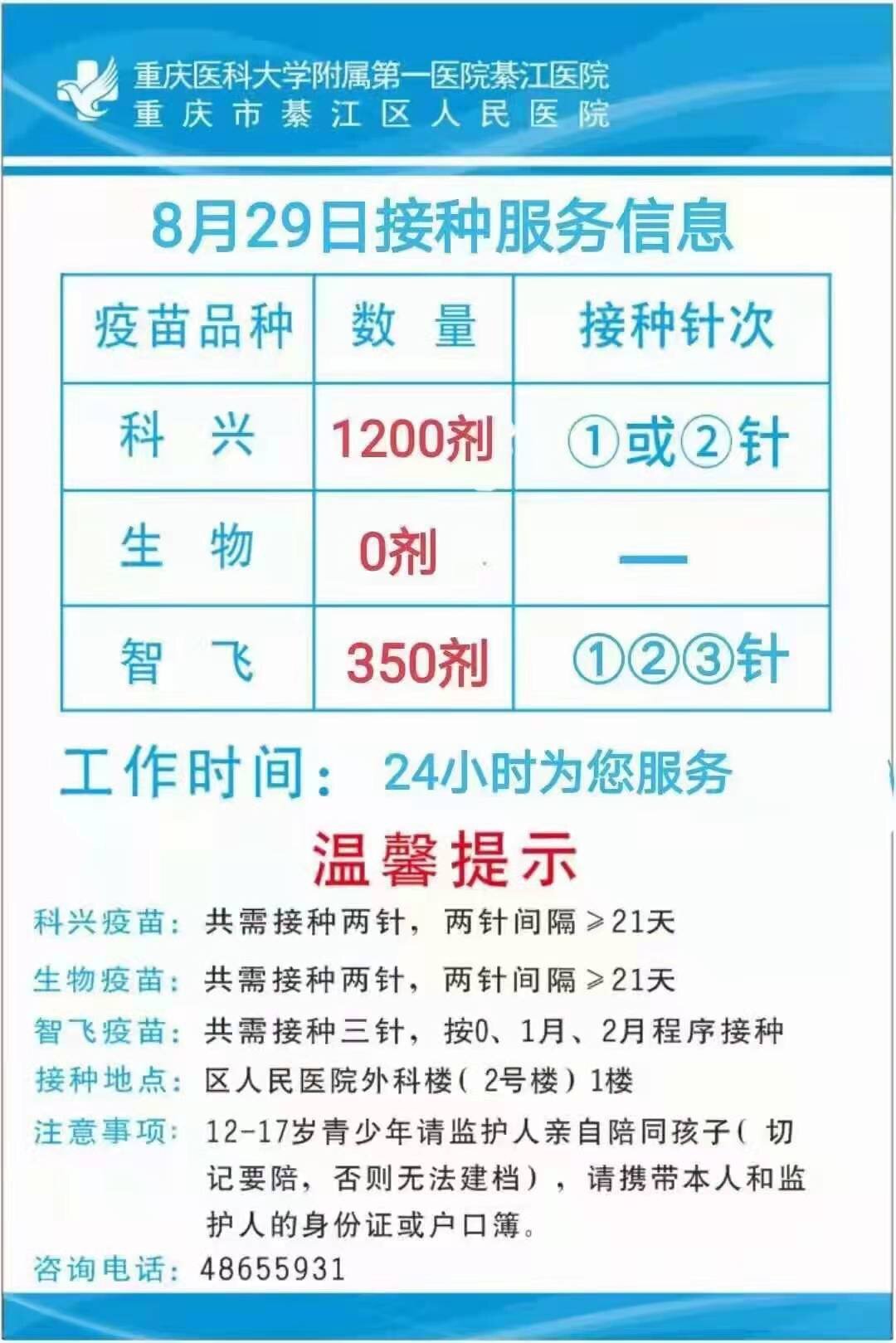 綦江8月29日疫苗接种信息