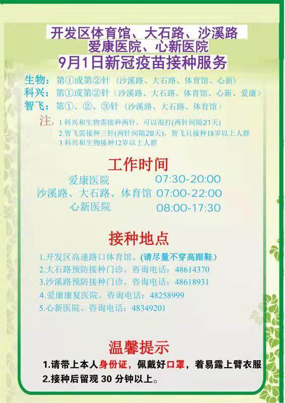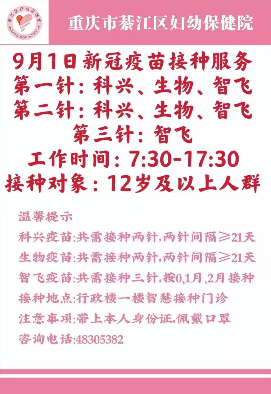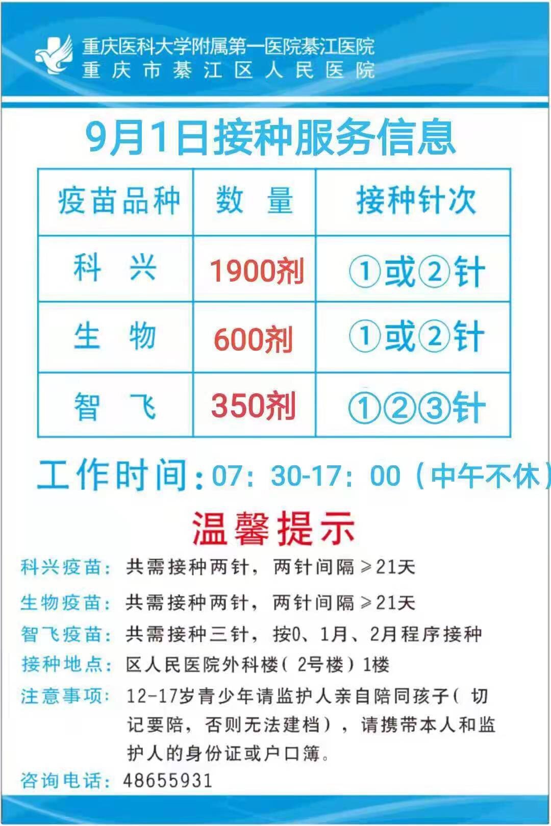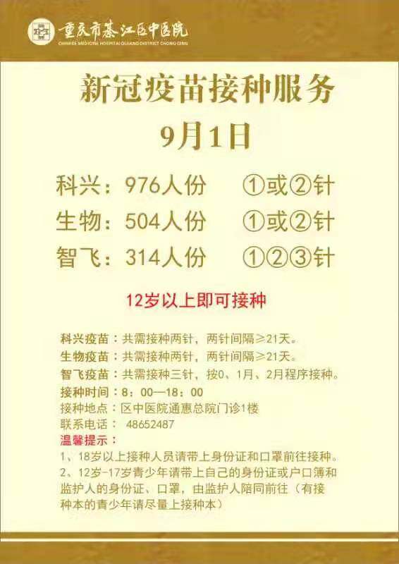 綦江9月1日疫苗接种信息