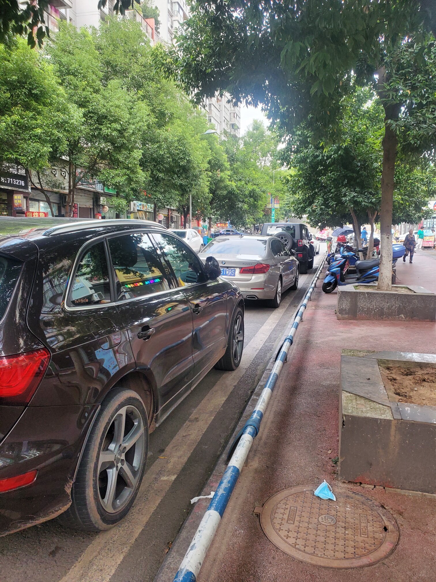 九龙小学隔离带?目的是规范行车,不准乱停,结果拆除之后方便的乱停车的,受苦的是看不清楚的!悲惨不!好久恢复隔离带哟!
