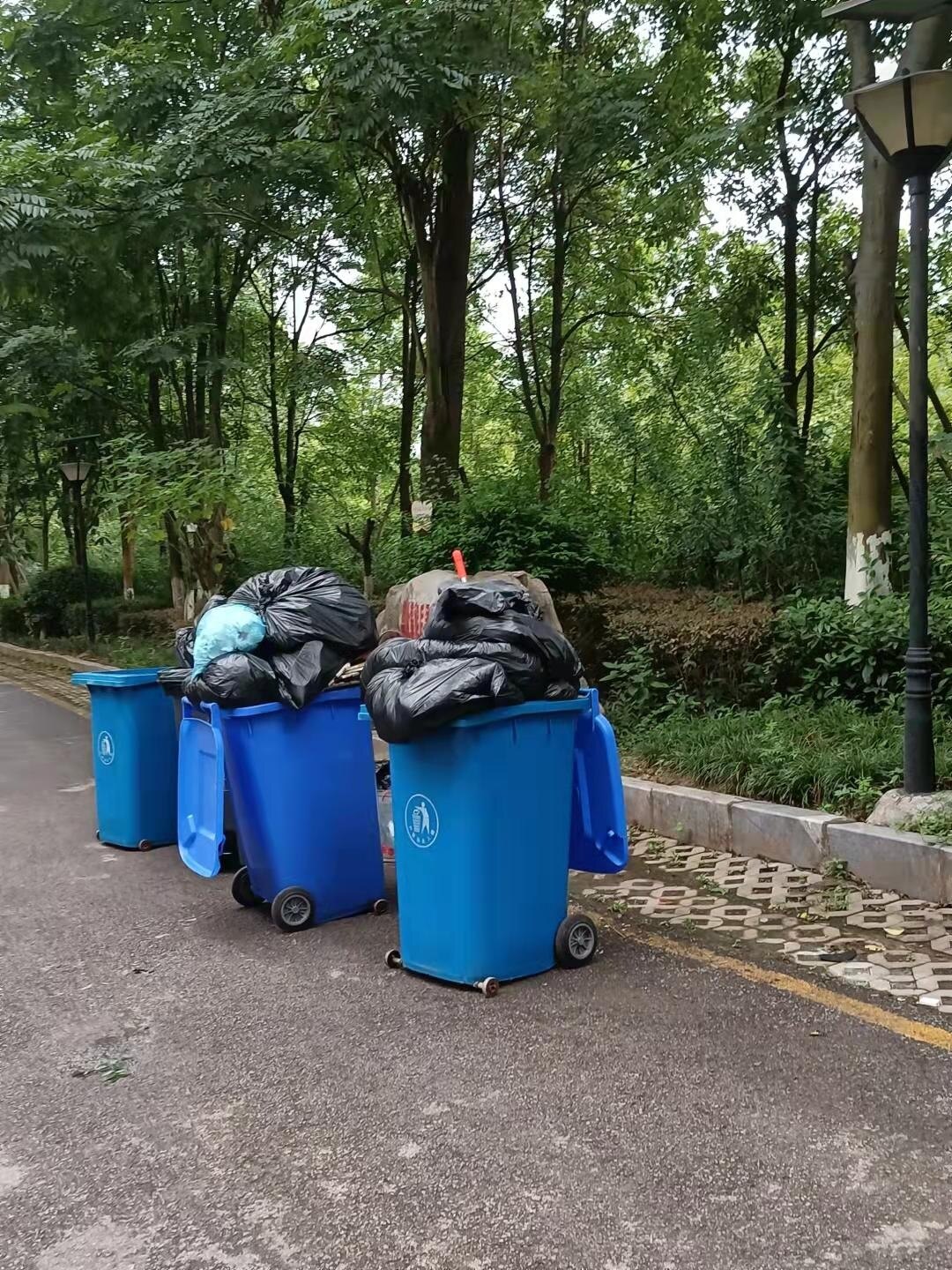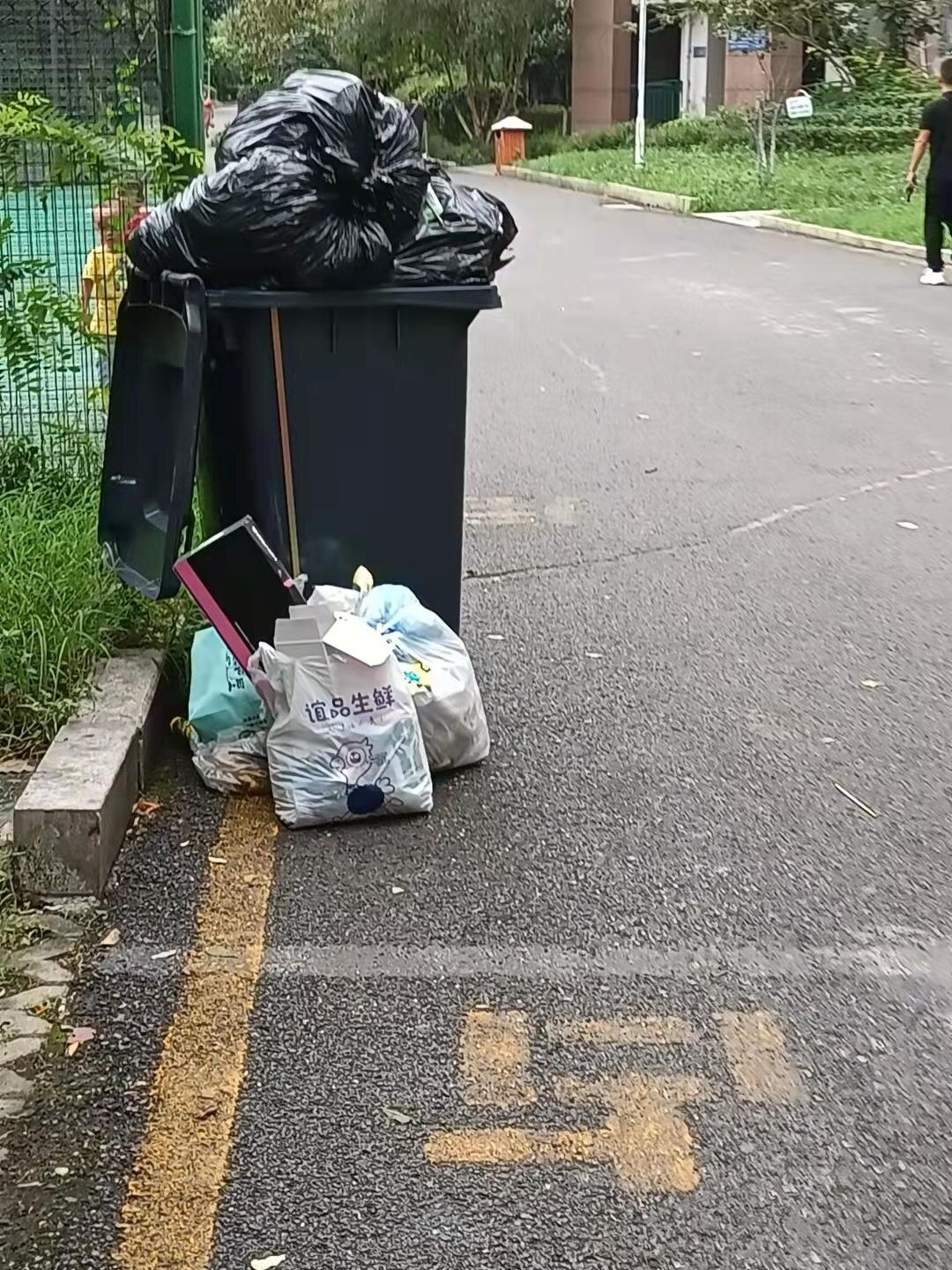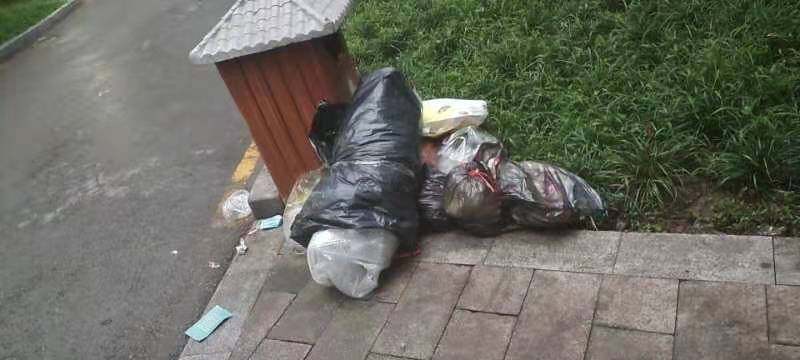 这个就是扔在指定的地方垃圾桶少了装不下呀!又没有及时的清理?所以就变成垃圾小区了!!