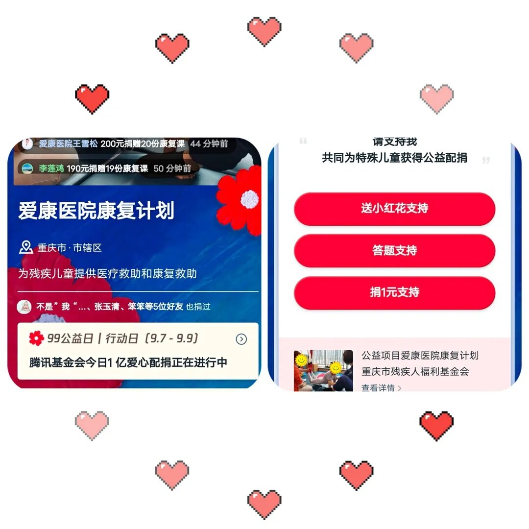 从今年7月份开始,綦江爱康医院党支部书记胡旋组织全体员工,成立“爱康医院康复计划”公益小组。每天每个人积极捐款、捐步、答题集小红花,在“99公益日”相助腾讯公益事业共同发展,争取让更多的人得到帮助。