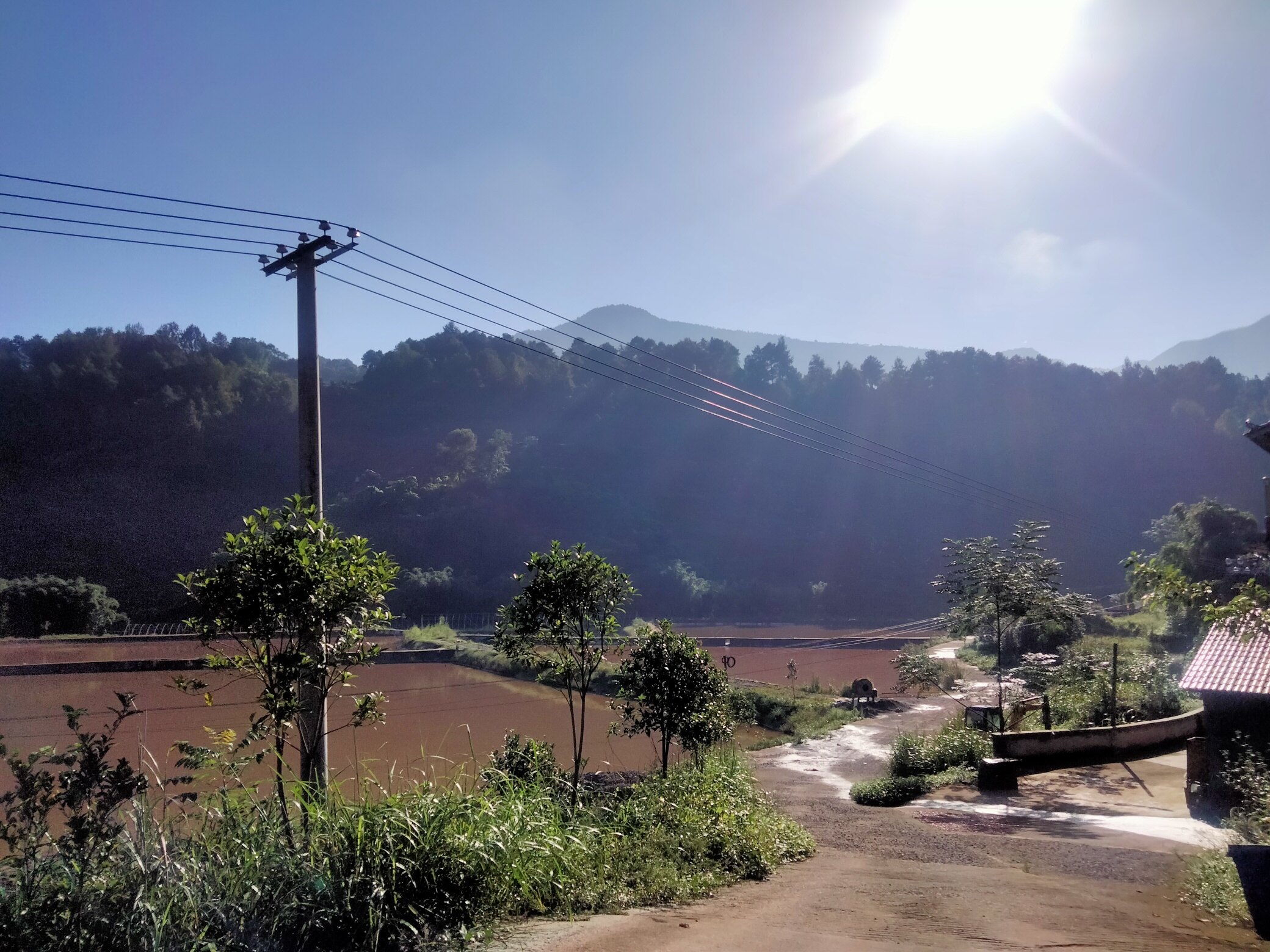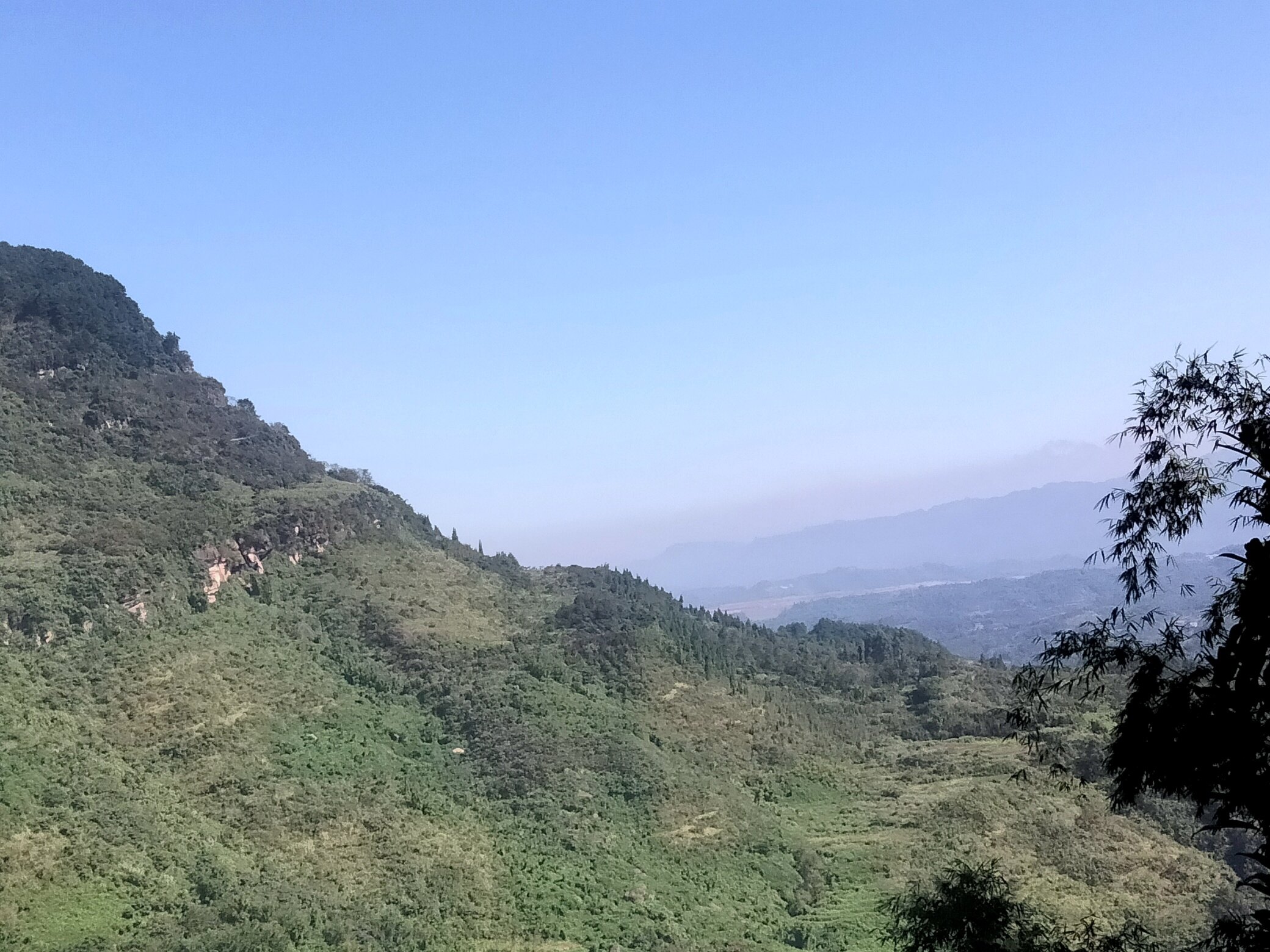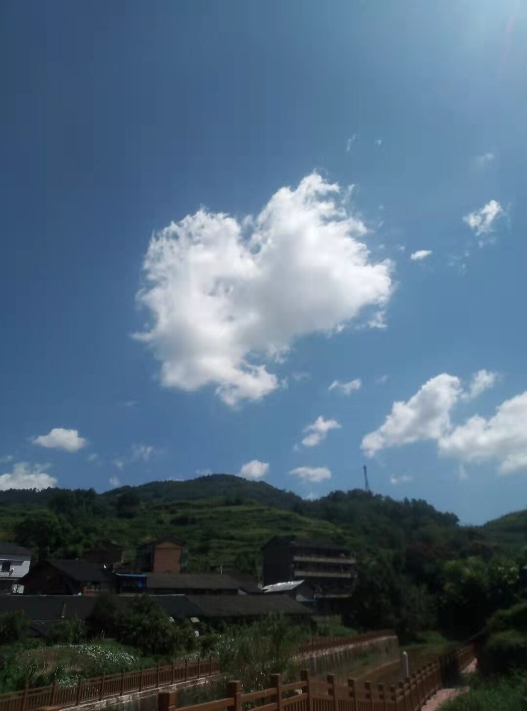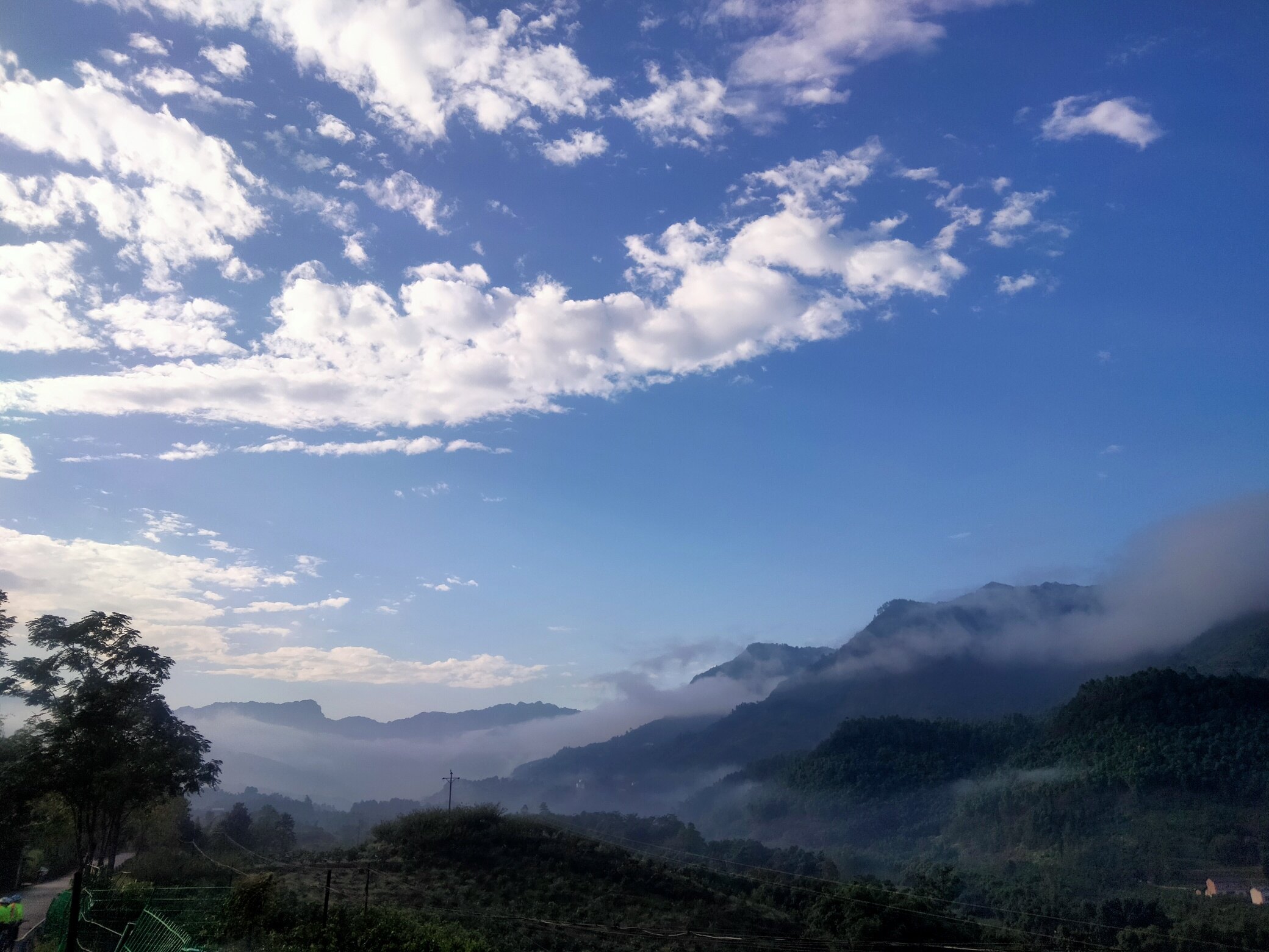 △△接连几天的绵绵细雨,甚至滂沱阵雨,清溪河河水暴涨,一片黄色,虽看不到波涛汹涌,但水下定是暗流涌动,泥沙俱下,满眼黄色与岸边碧草、绿树对比鲜明。雨后天晴,山谷中升腾的雾气虚无缥缈,若隐若现,随风飘逸。蓝蓝的天,白白的云,天上人间,浑然一体