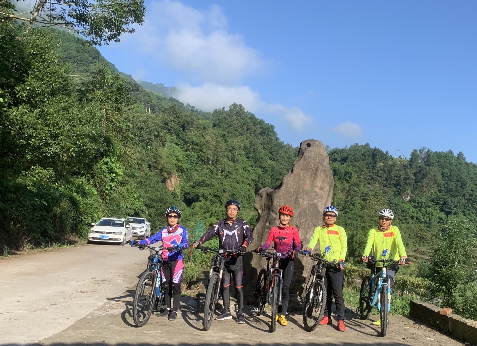 △△早上7:30城北大桥,五骑纵马扬鞭,拟从永新沾滩上山,经三会文家坝上古剑山,领略沿途绝美风光,过一个运动的中秋节。