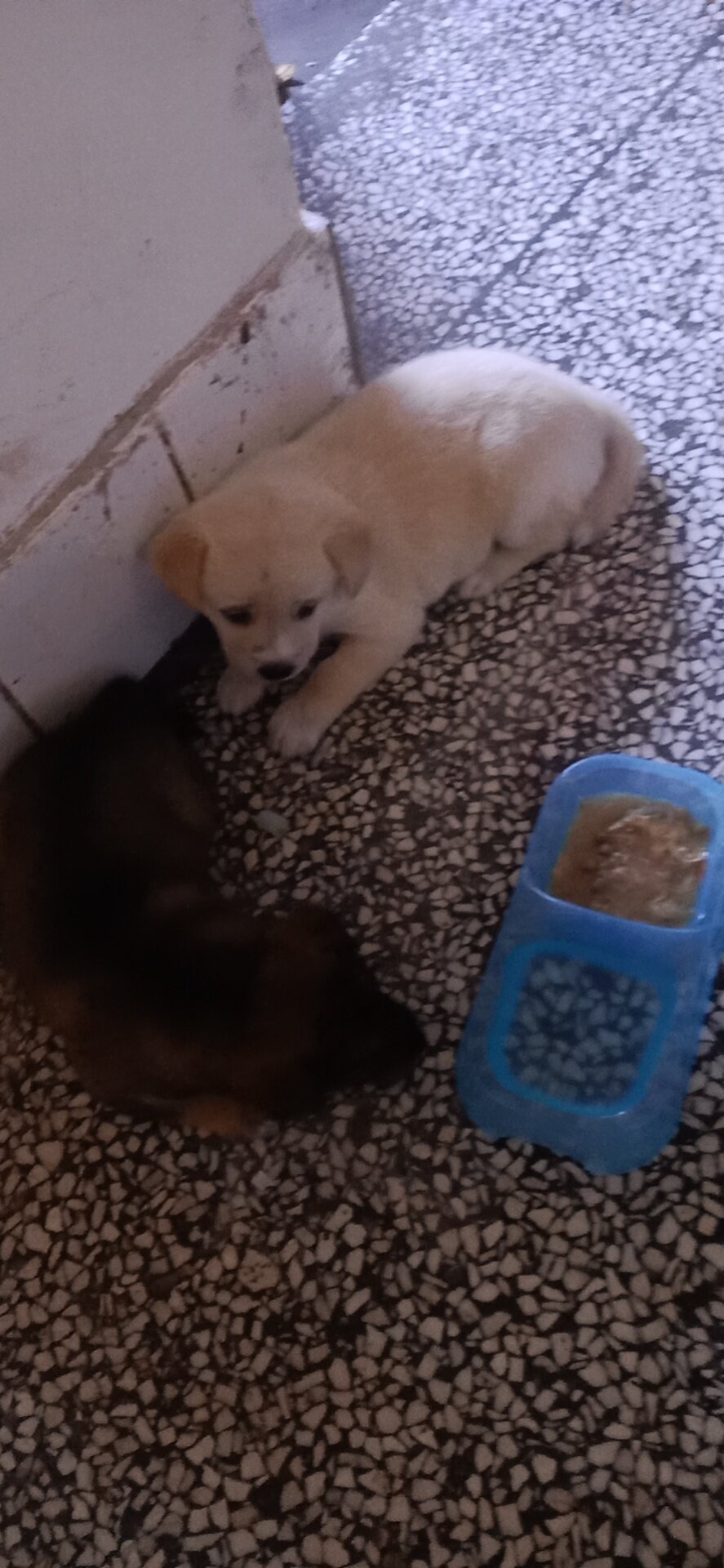 娃儿捡了两只小狗儿求好心人领养。