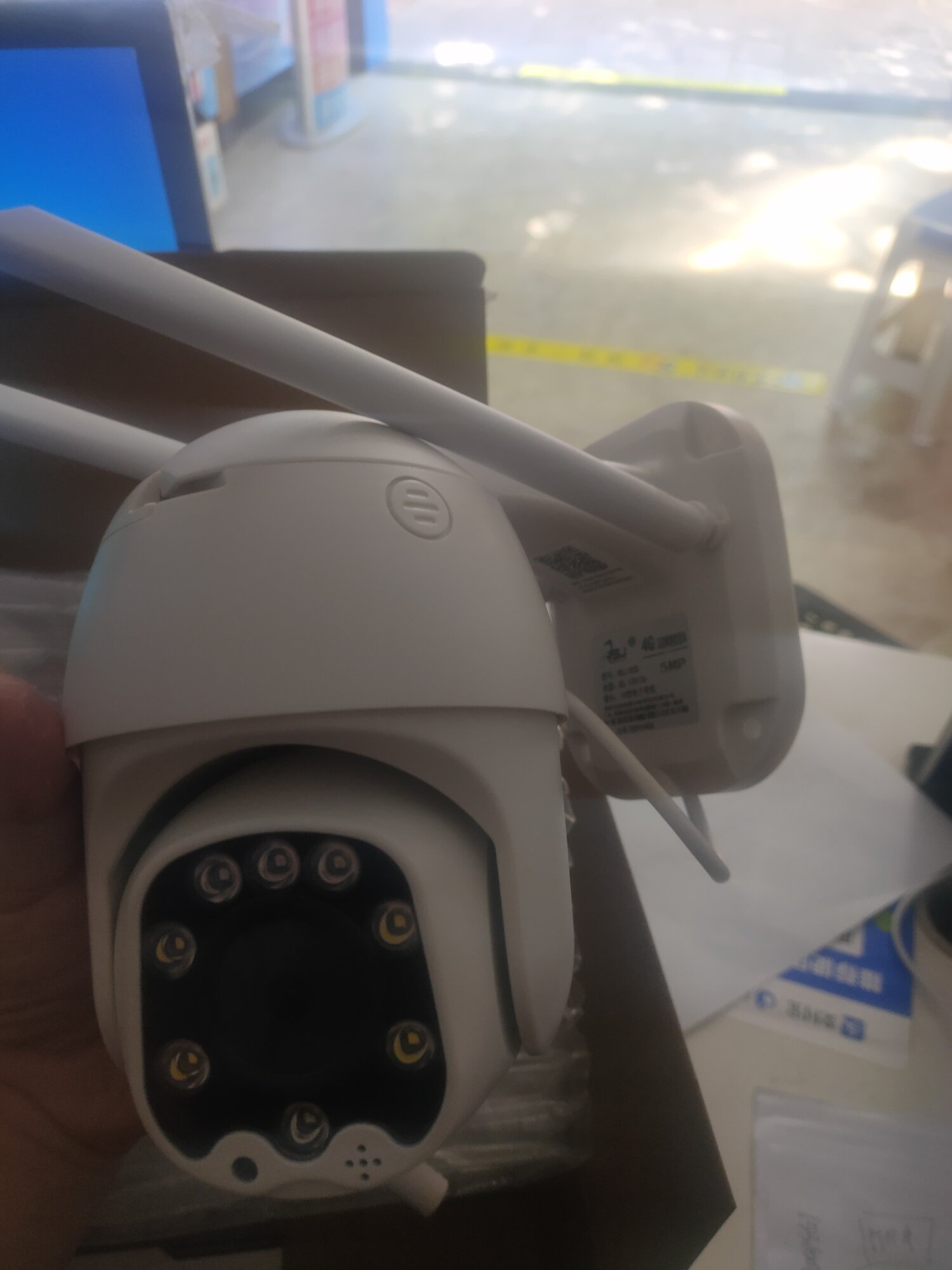 全新监控,支持4G卡,也支持室内室外,室外最好,双向语音,360°旋转,SD卡储存,HD高清 功能图中有,看清楚用4G卡的
