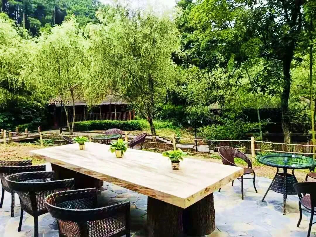 茂盛的松树延伸进露台,草木相融,