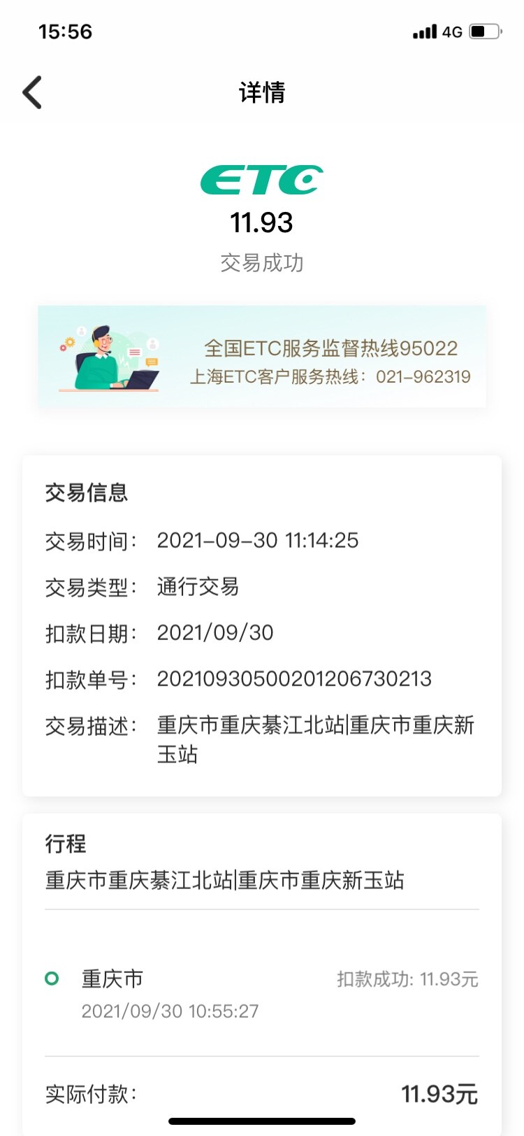 意思是走重庆的过路费只有15了麦