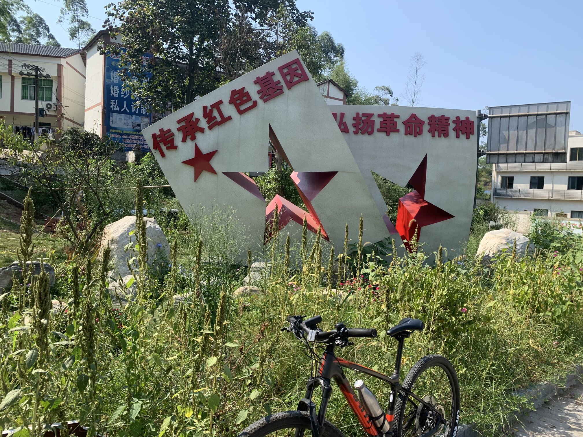 △△烈日高悬,三十度的高温,四位抗日英雄脚踏自行车,驰骋在三江、石角、永城的公路上。一睹王良纪念馆的芳颜,接受红色教育,庆祖国妈妈七十二生日。