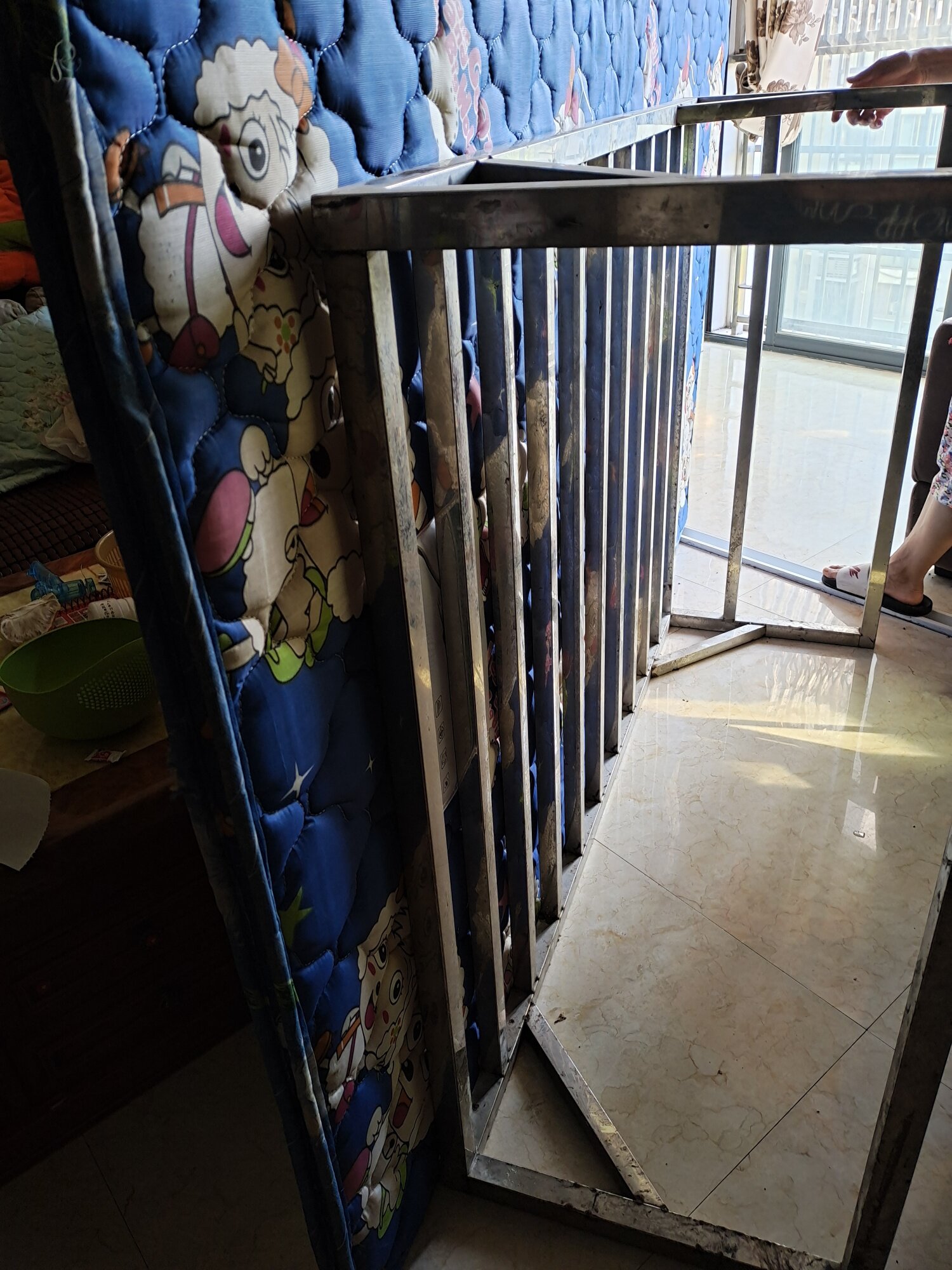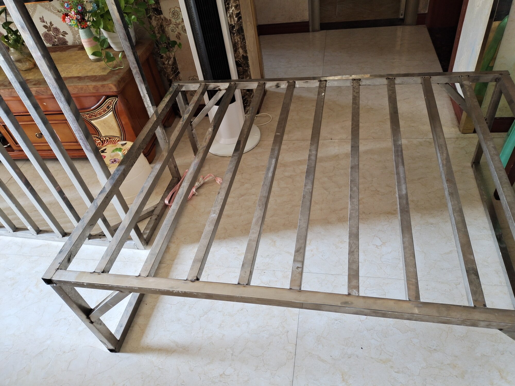 两个不锈钢架合成一个1.3米的床架,一个3公分的木板,一个3公分的床垫。9成 ...
