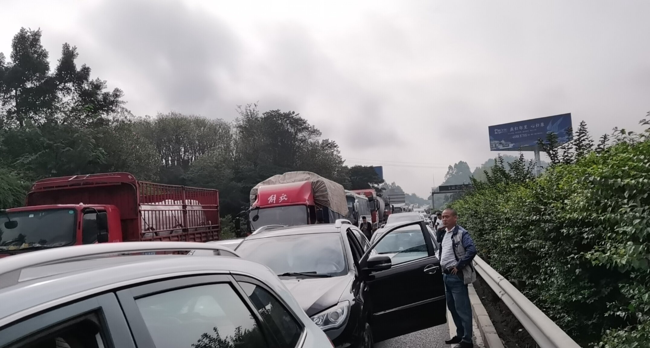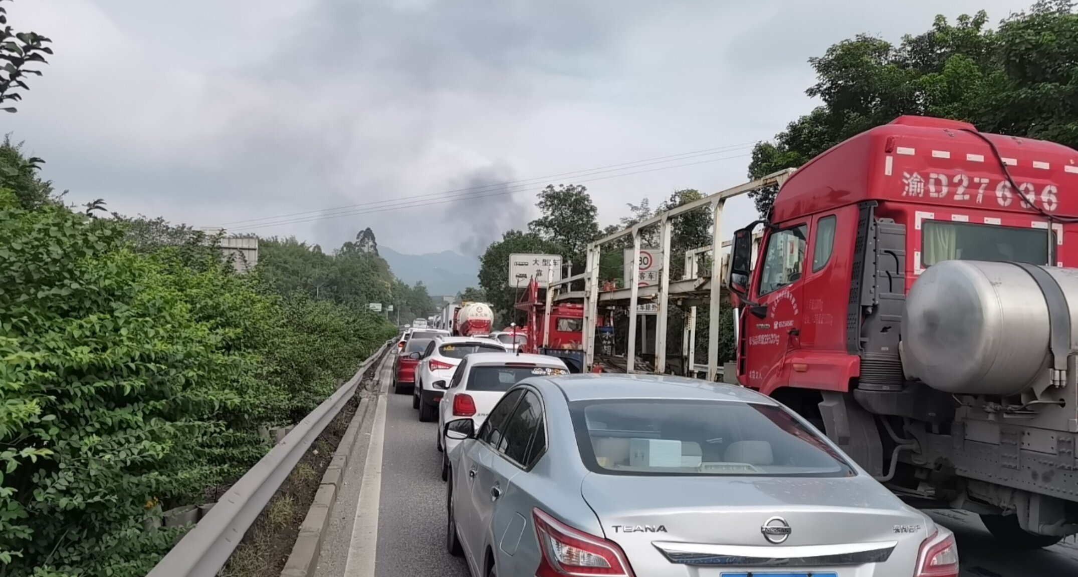 G75綦江往重庆方向堵车到一品了,在冒黑烟,疑是出车祸了,没有来的就不要来了