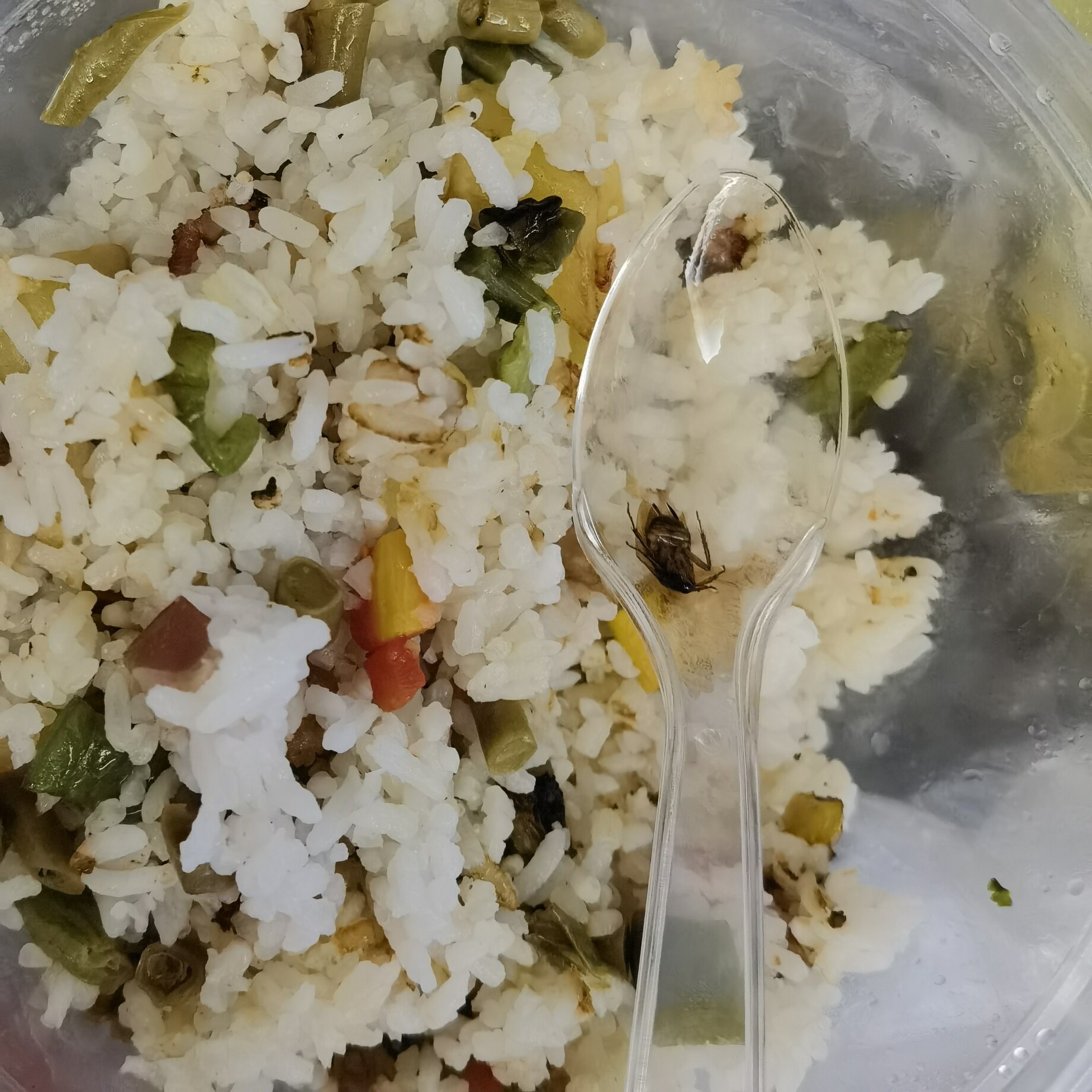 吃了一半才看到勺子上有个蟑螂