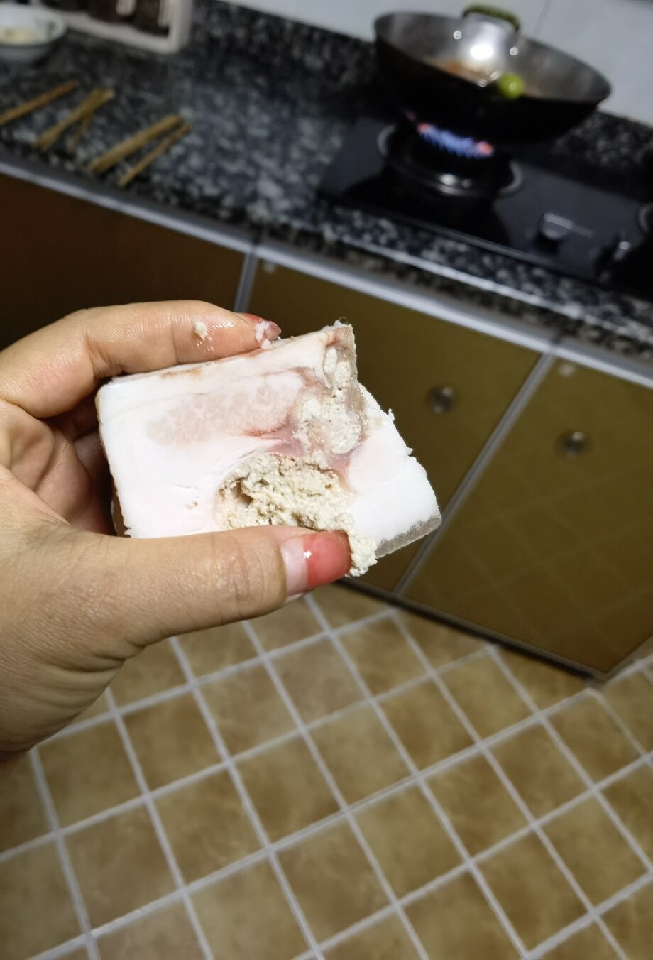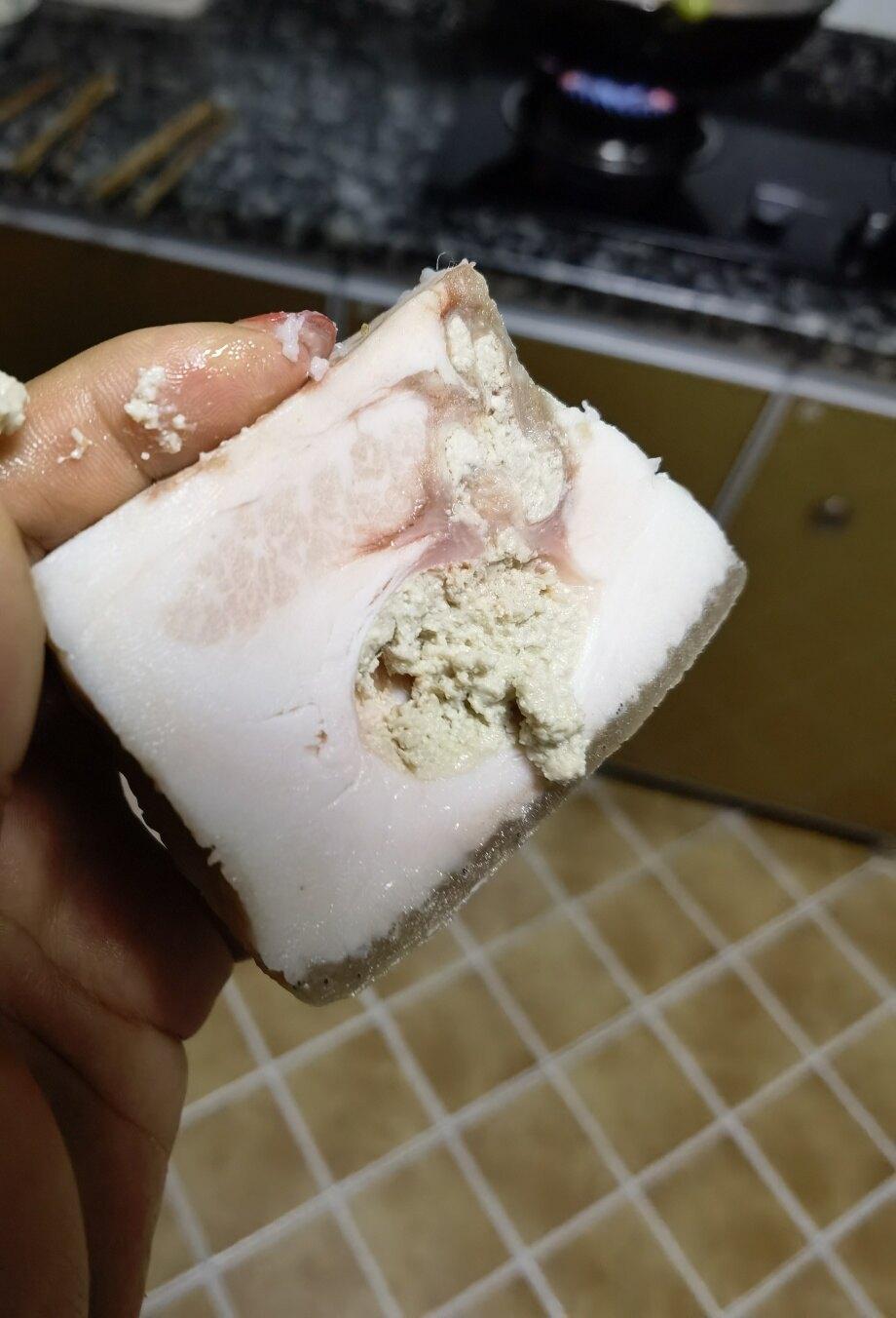 这种我遇到过,是,砍好的鸡大腿,我感觉有点臭,一捏就出来一坨东西,很臭,整个鸡我都丢了,想想都恶心
