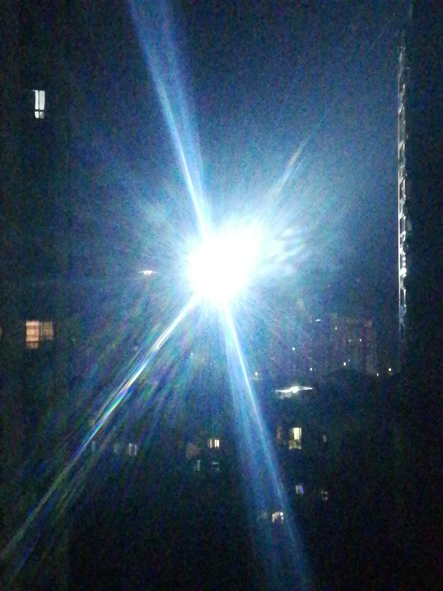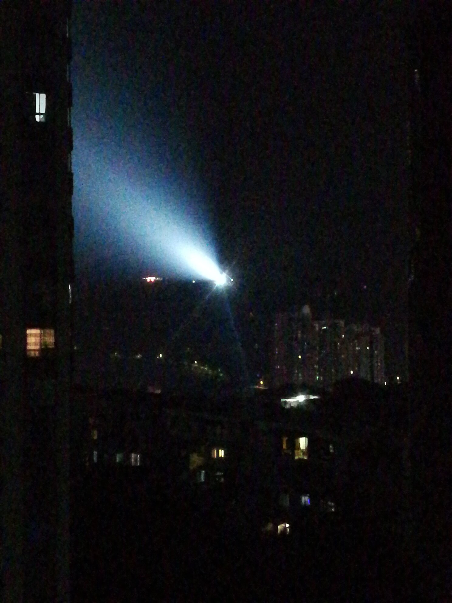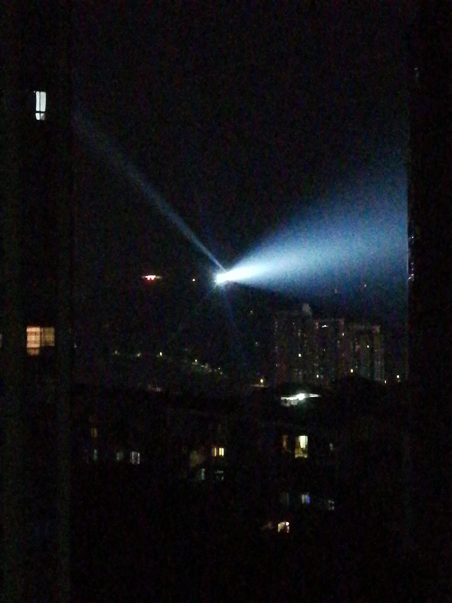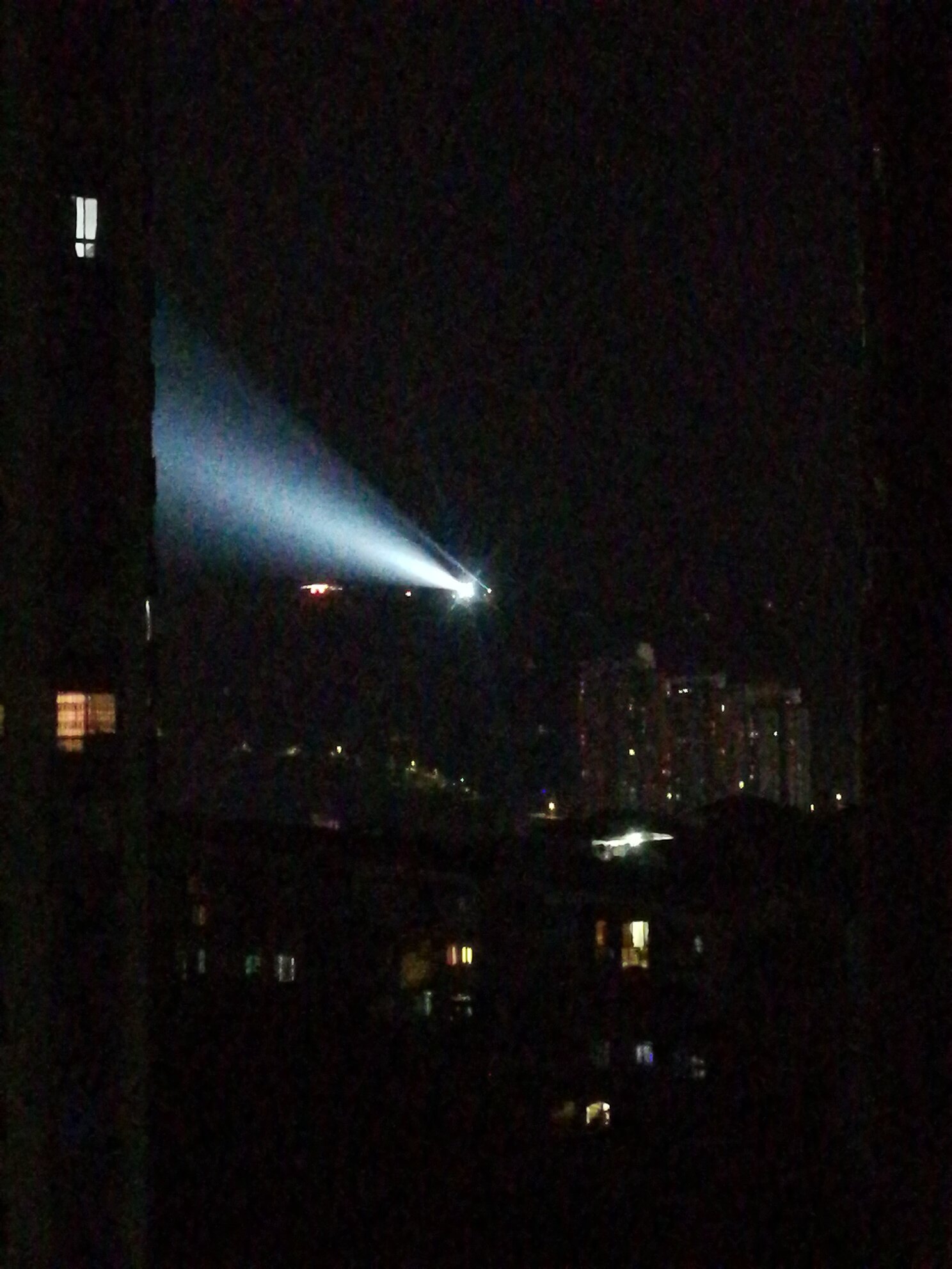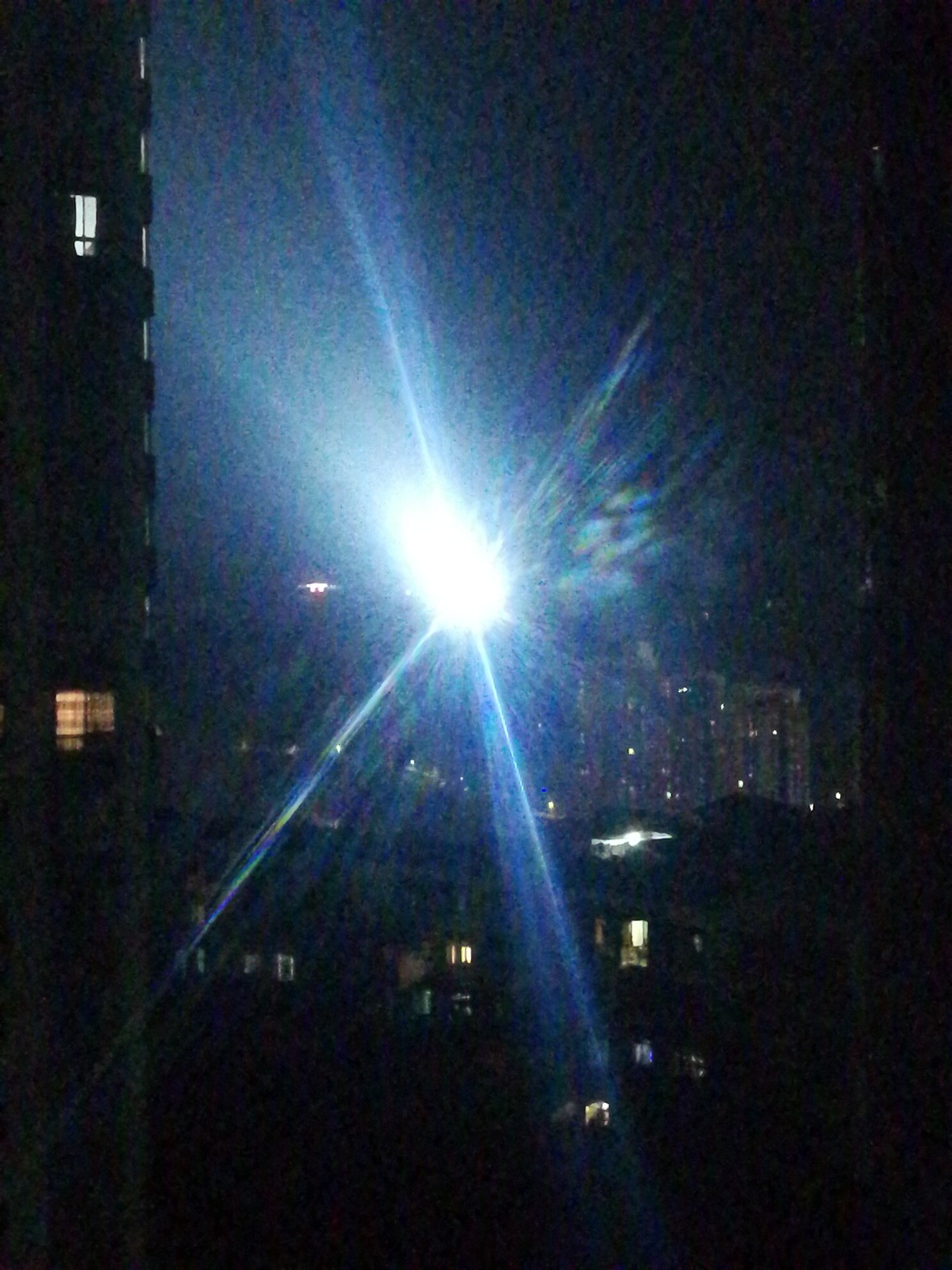这个灯不是射高空吗?怎么射居民楼上了,整怀孕了怎么办