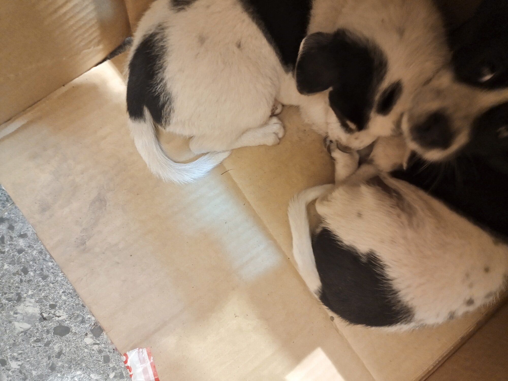 丢弃在店里面的两只可怜的小狗,家里面不让养,希望有好心人来领养