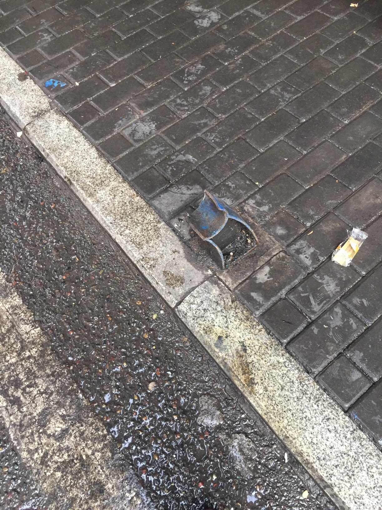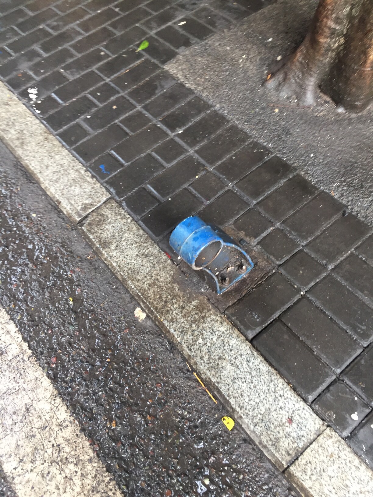 隐患,营盘山小学路口,人行道上护栏损坏