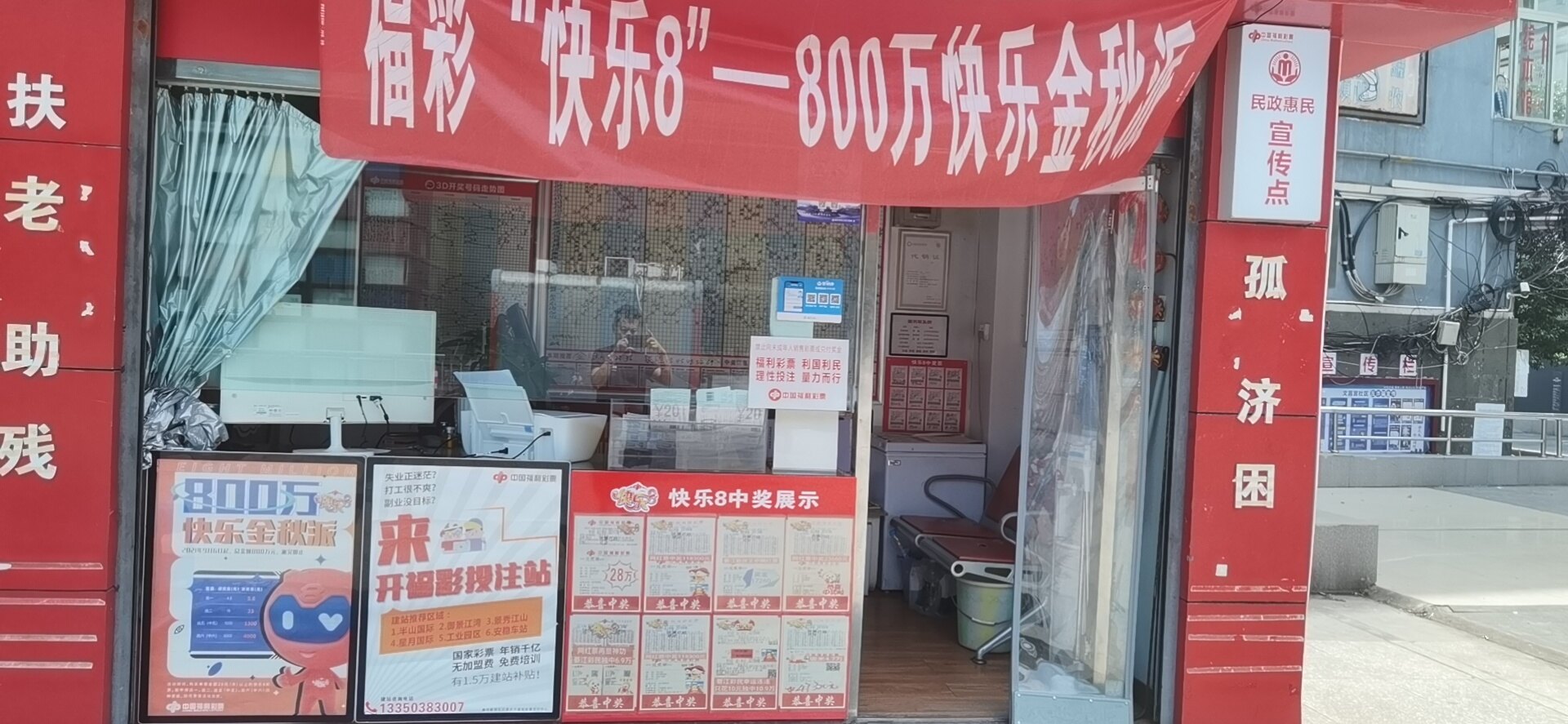 福利彩票投注站转让,最近连发了几天,因为本人从事其他工作,并没有更多精力来照顾彩票店,所以欲寻求一个真心想要接手的朋友,我这个店属于民心亭,没得租金,只有宽带费用(79/月)以及电费(电费根据自己使用情况,属于民用电0.45左右每度),彩票店位置在区府正对面,中山路微风广场上面。本店目前每天正常销量1500左右,不包含刮刮乐,刮刮乐每月销量1-2万,接手的话,我可以留下店里面的微信,所有客源全在这个微信上面,店里面我添置了一些东西,比如打印机、遮雨棚、遮阳帘。店铺转让费用1.5万,有意者电联17711313802,非诚勿扰。