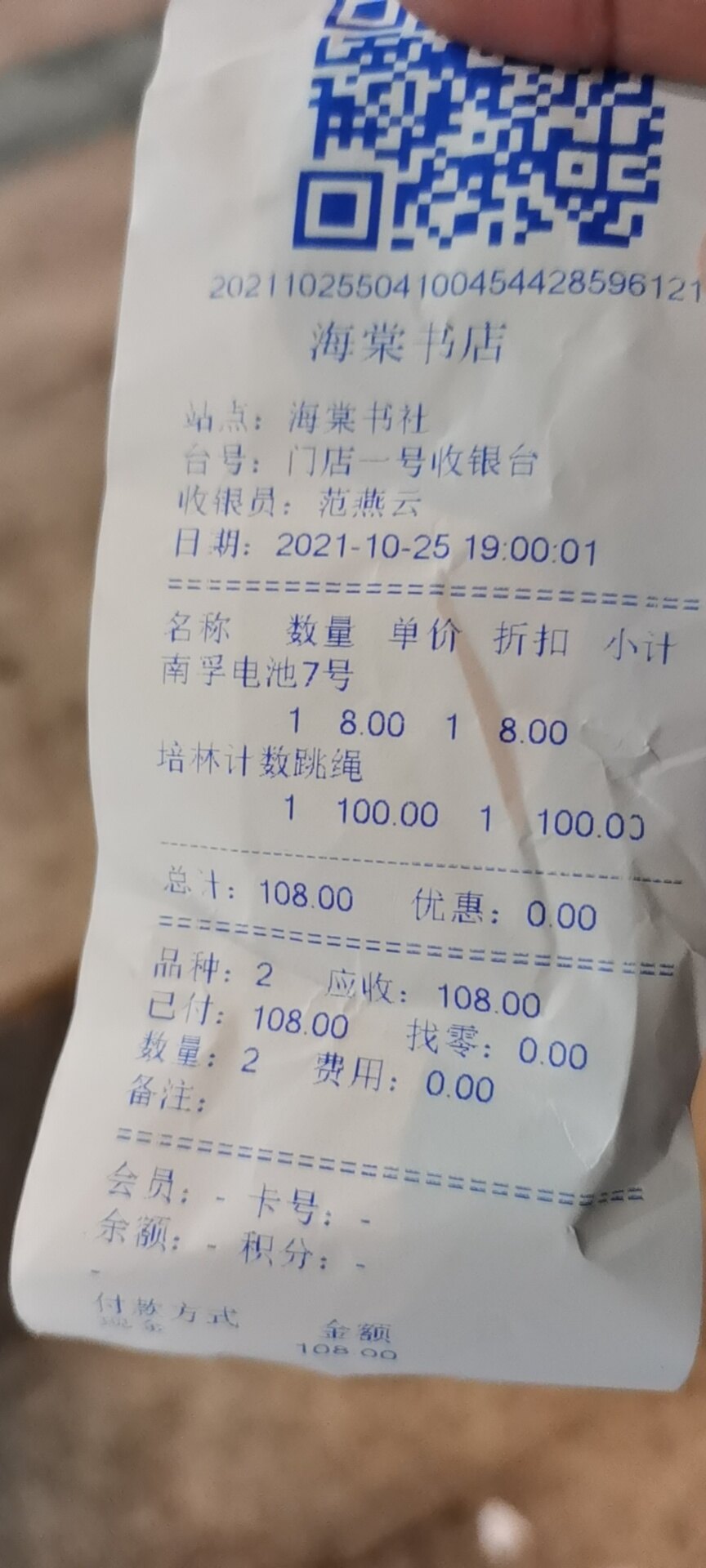 海棠书店前几天跳绳断货了,我在蓝月亮买的培林计数跳绳原价一百三十八元,打完折还一百多元,早知道海棠有货了我还省几十块