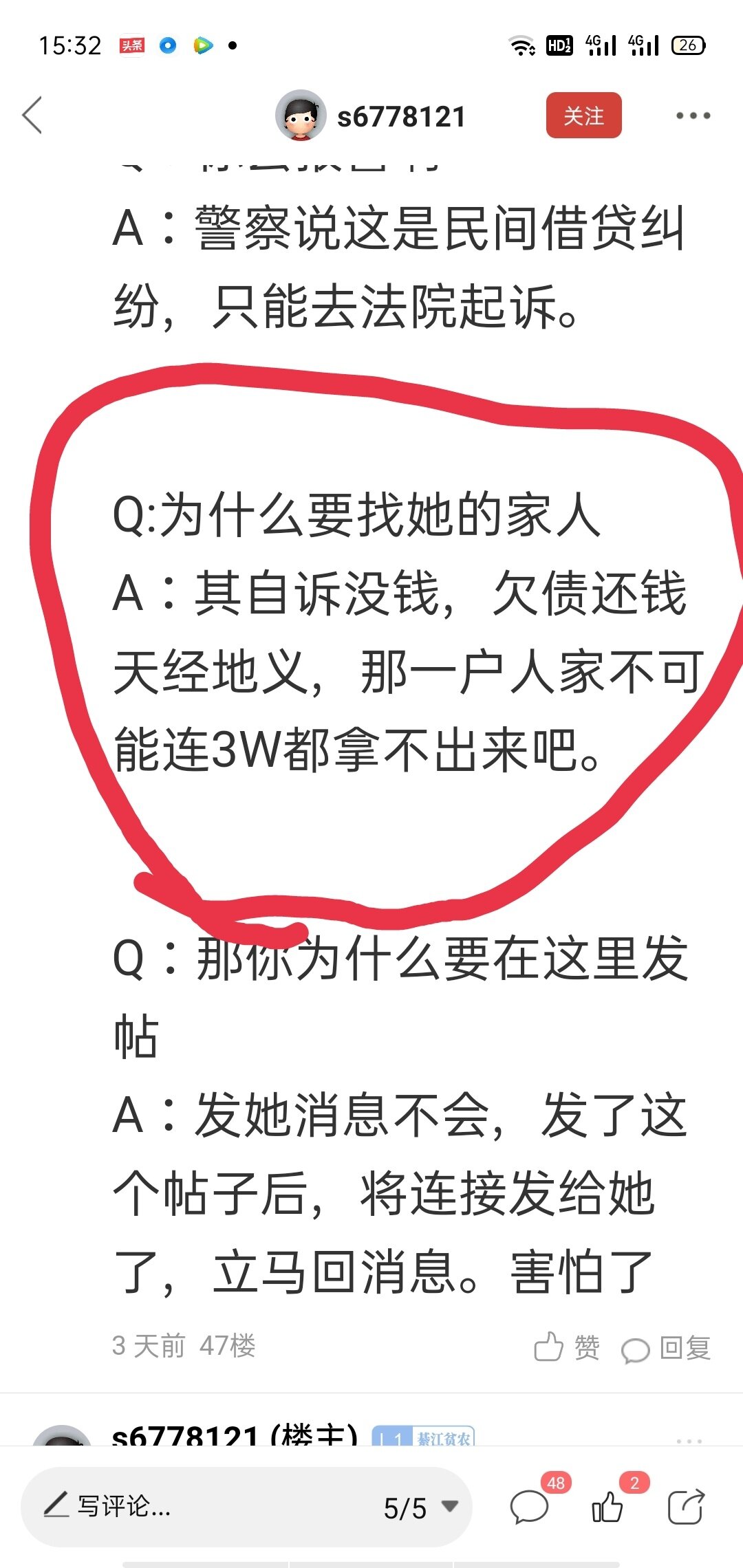 联系不到她,也不知道她的家里人的联系方式,只能用这种方法,看看能不能找到他的家人