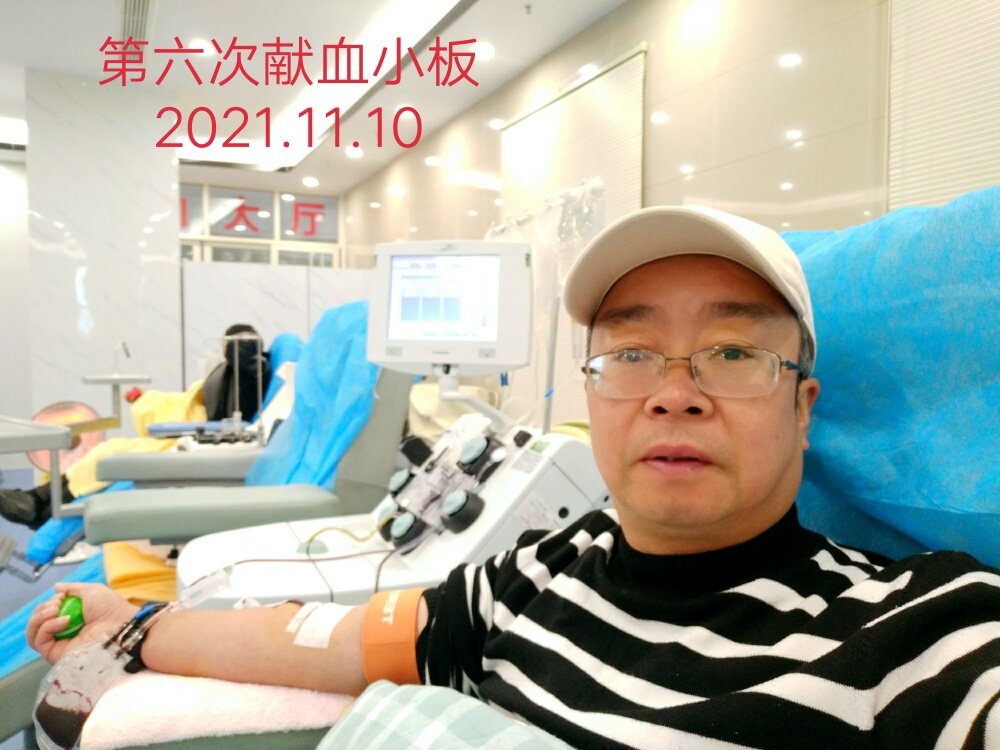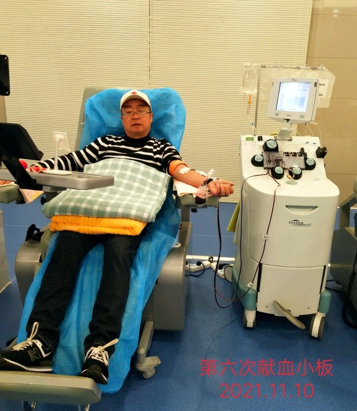 第六次献血小板,将无私奉献进行到底!