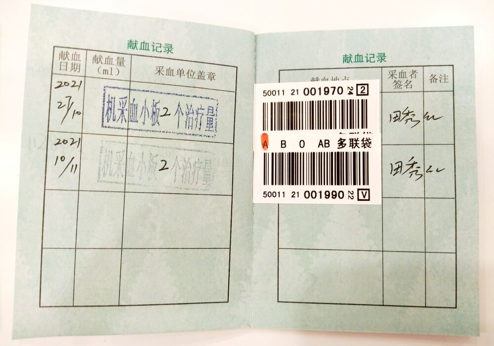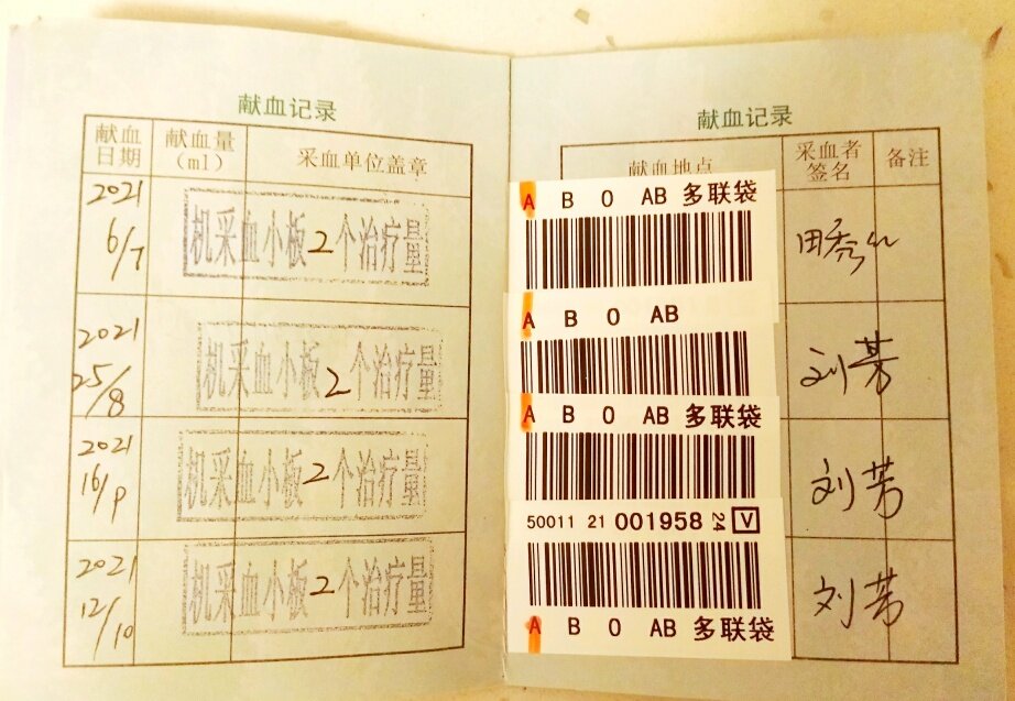 第六次献血小板。