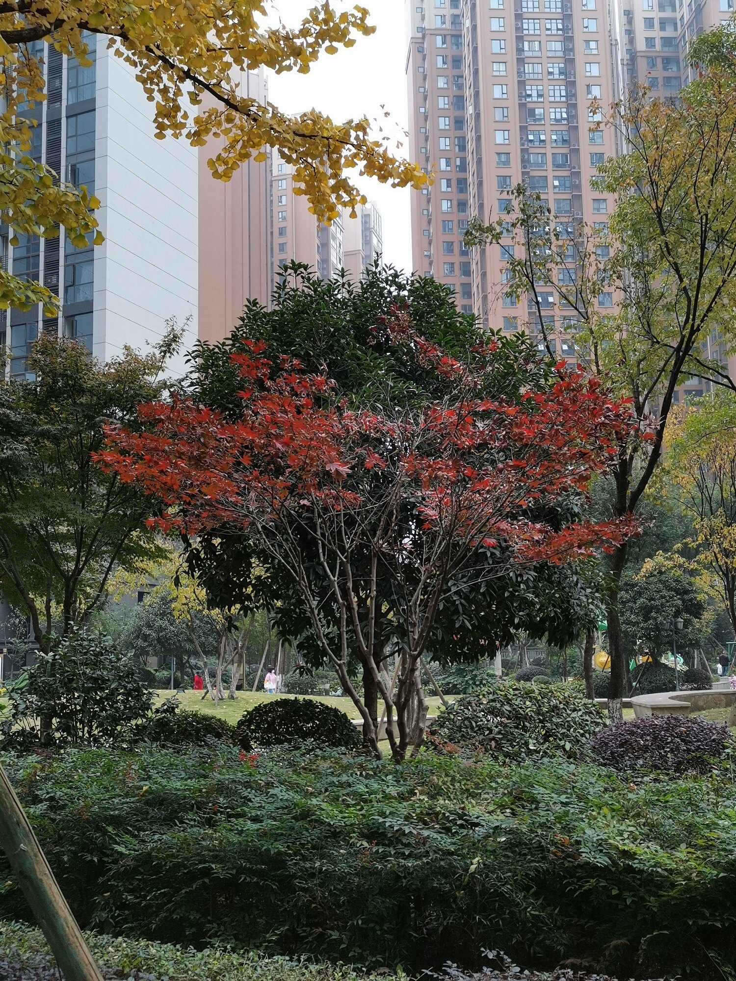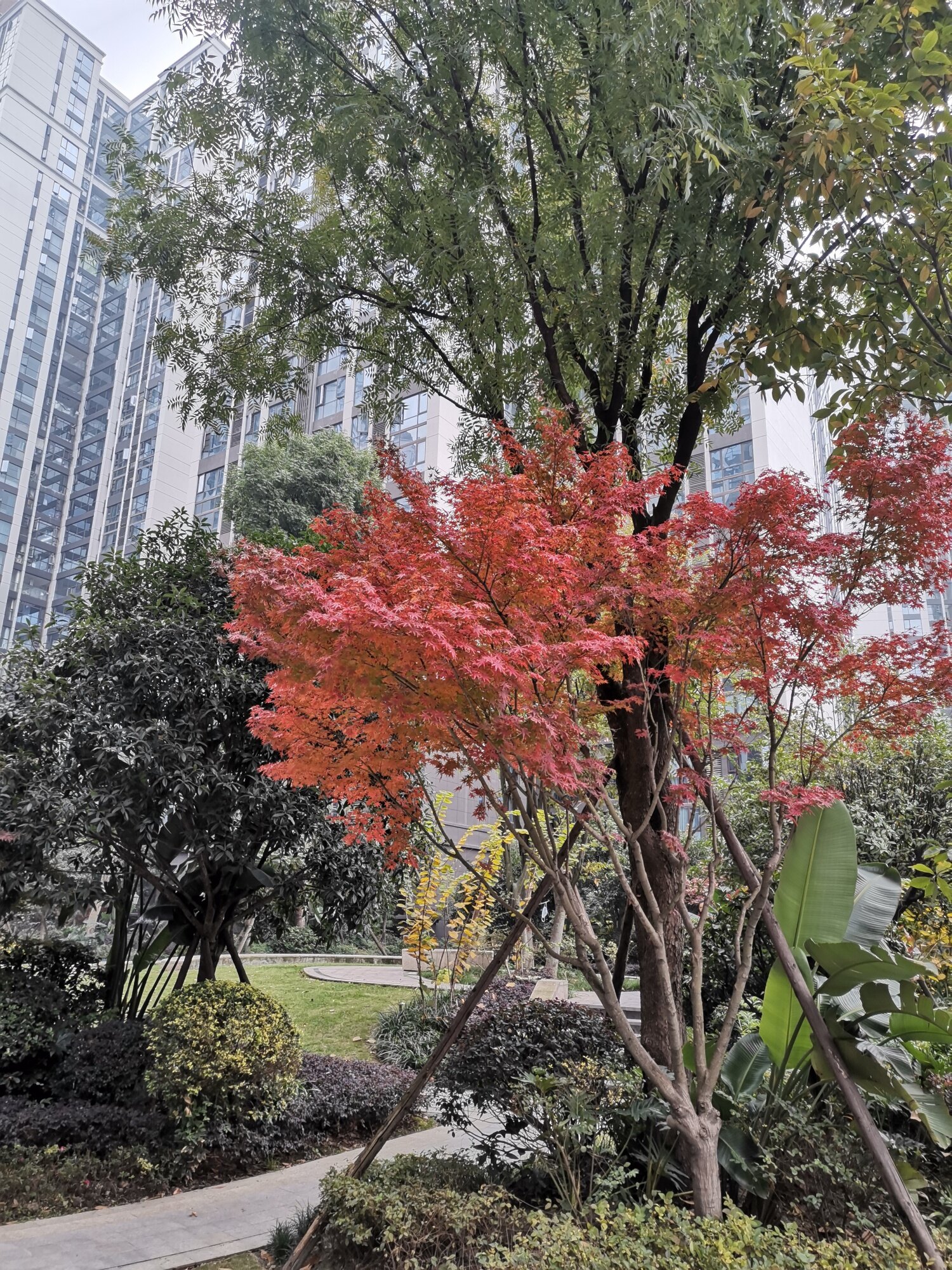 满院春花新绿衬,孤枝红叶烬燃秋。