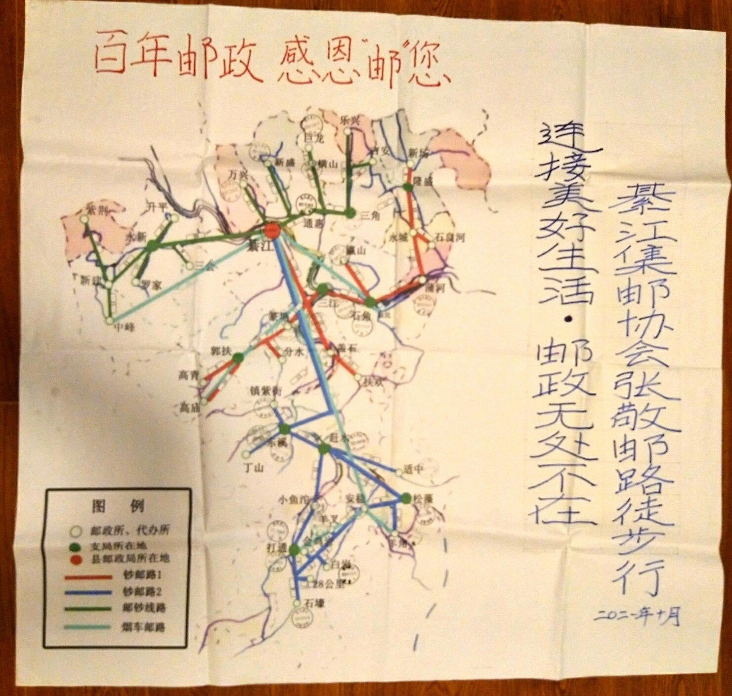 “百年邮政、感恩邮您”“连接美好生活、邮政无处不在”环綦邮路徒步行第十六天计划圆满完成:羊角邮政所。非常有意义的一天。