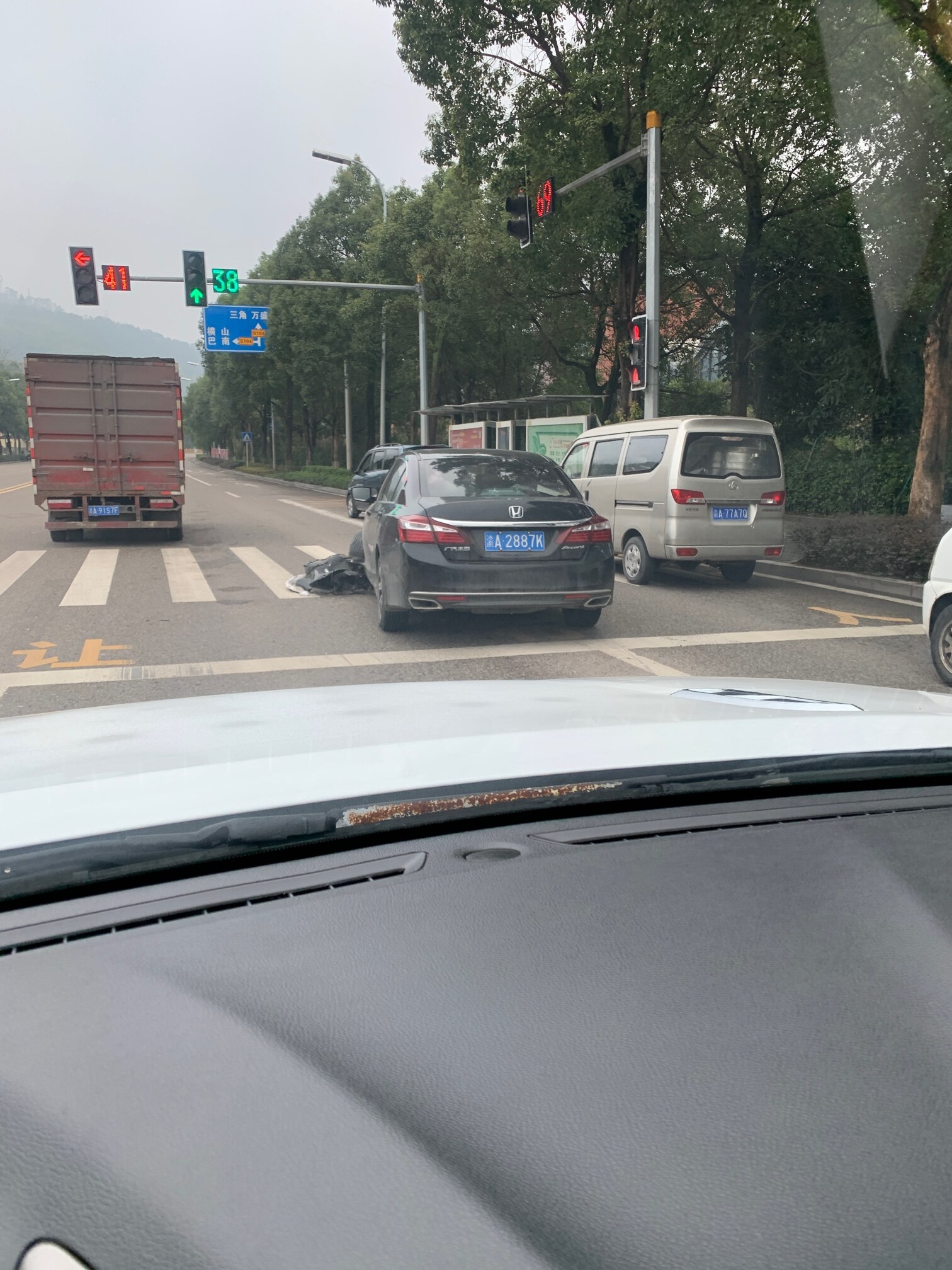 上横山的路口,小车这个样子了