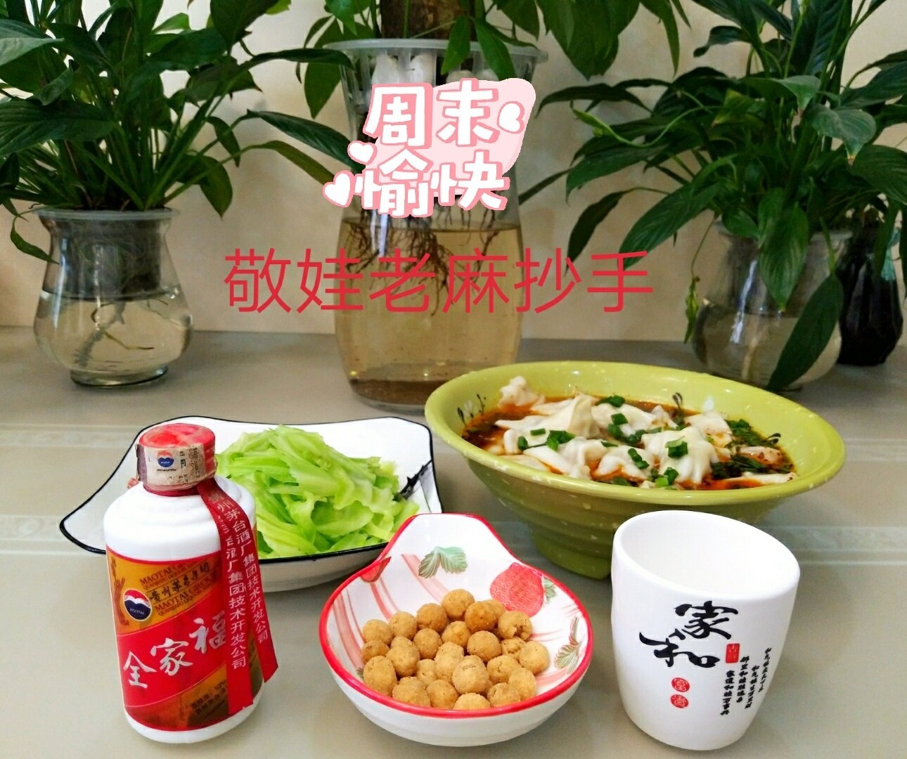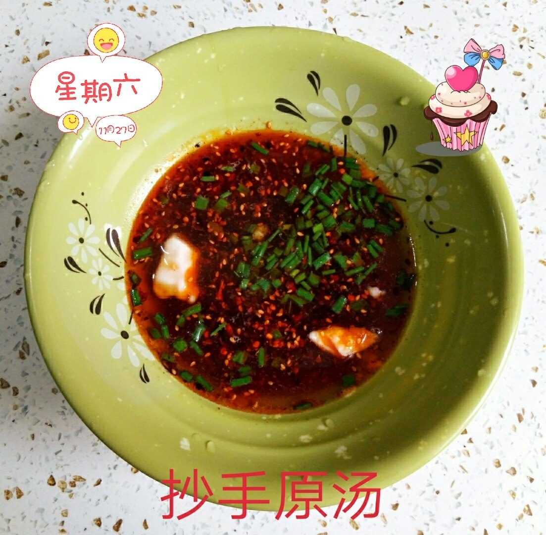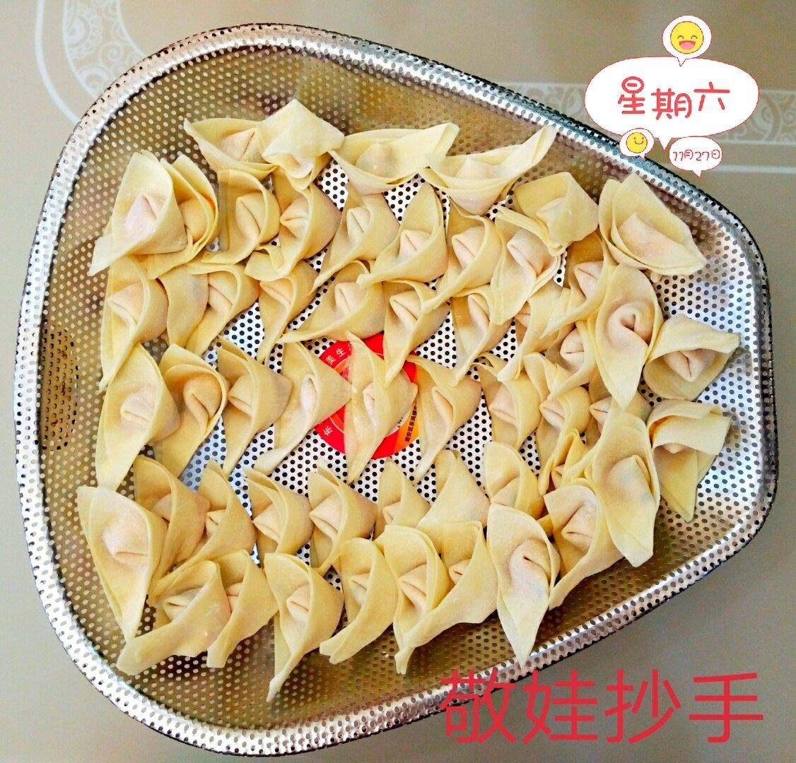 周末在家亲手做一点抄手,食材安全及新鲜。猪肉必须是三肥七瘦的夹子肉或者眉毛肉,臊子里加鸡蛋、水淀粉、少量的盐、胡椒粉适量,朝一个方向打匀。记住千万不要放鸡精和味精。煮抄手的水一定要宽,菜叶子煮好单独装盘,不要与抄手一起,否则佐料就被菜卷走了。佐料里不要放姜蒜,抢老麻的味道了!佐料里一定要花椒粉和花椒油,要放一小坨猪油。抄手煮到浮起来就行了。佐料汤加原汤,小面界有“原汤化原食”的说法。一碗麻、辣、鲜、香、烫的味美老麻抄手就成功了。麻是花椒、辣是海椒、鲜是馅料、香是火葱、烫是原汤。配上一杯酱香型的小酒酒,那个味道霸道惨了!