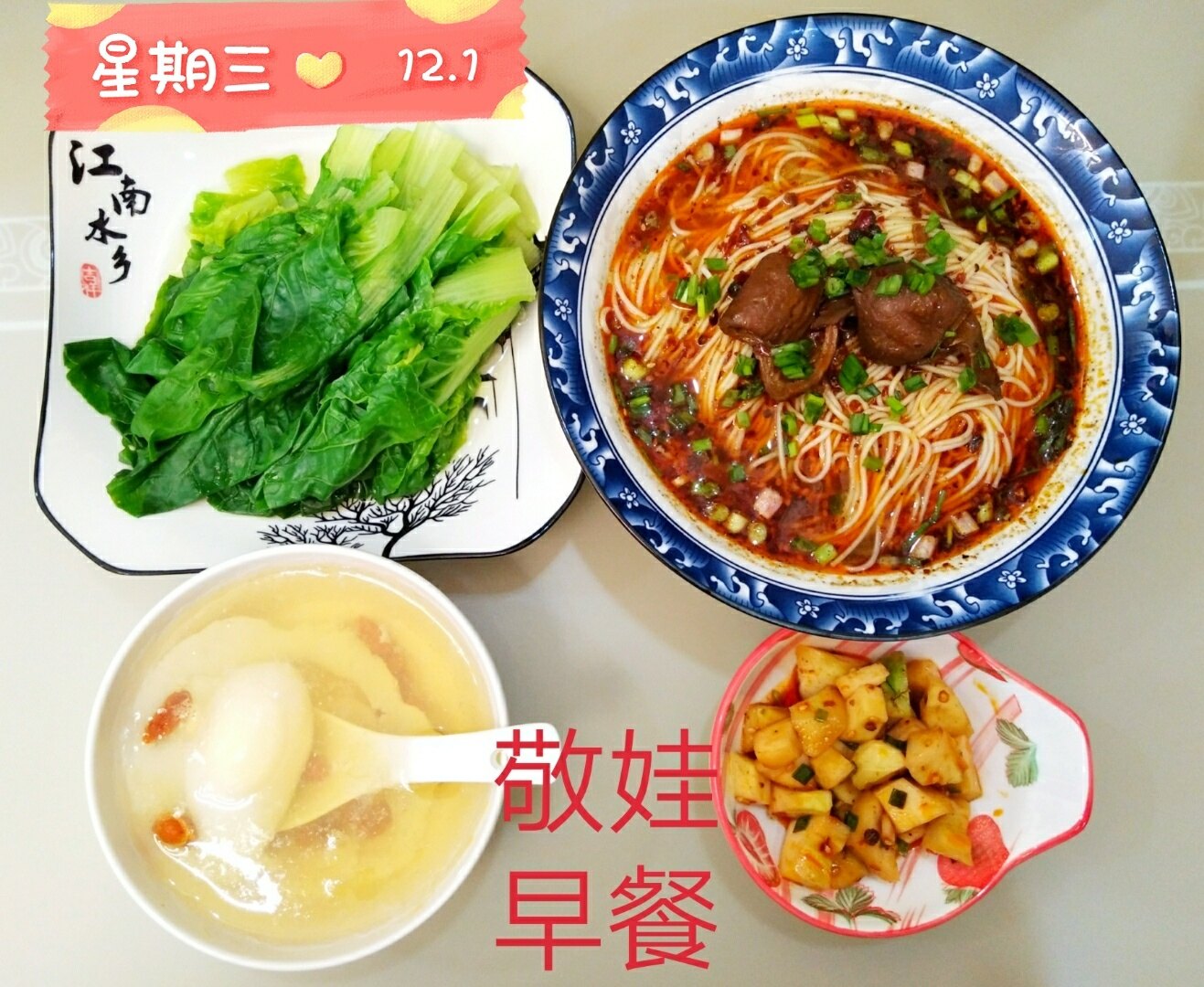 早上一定要吃早餐并且吃饱、吃好、吃舒服、吃出幸福感、获得感、满足感。增加能量让一天都元气满满的,让心中充满着爱去生活、工作、学习