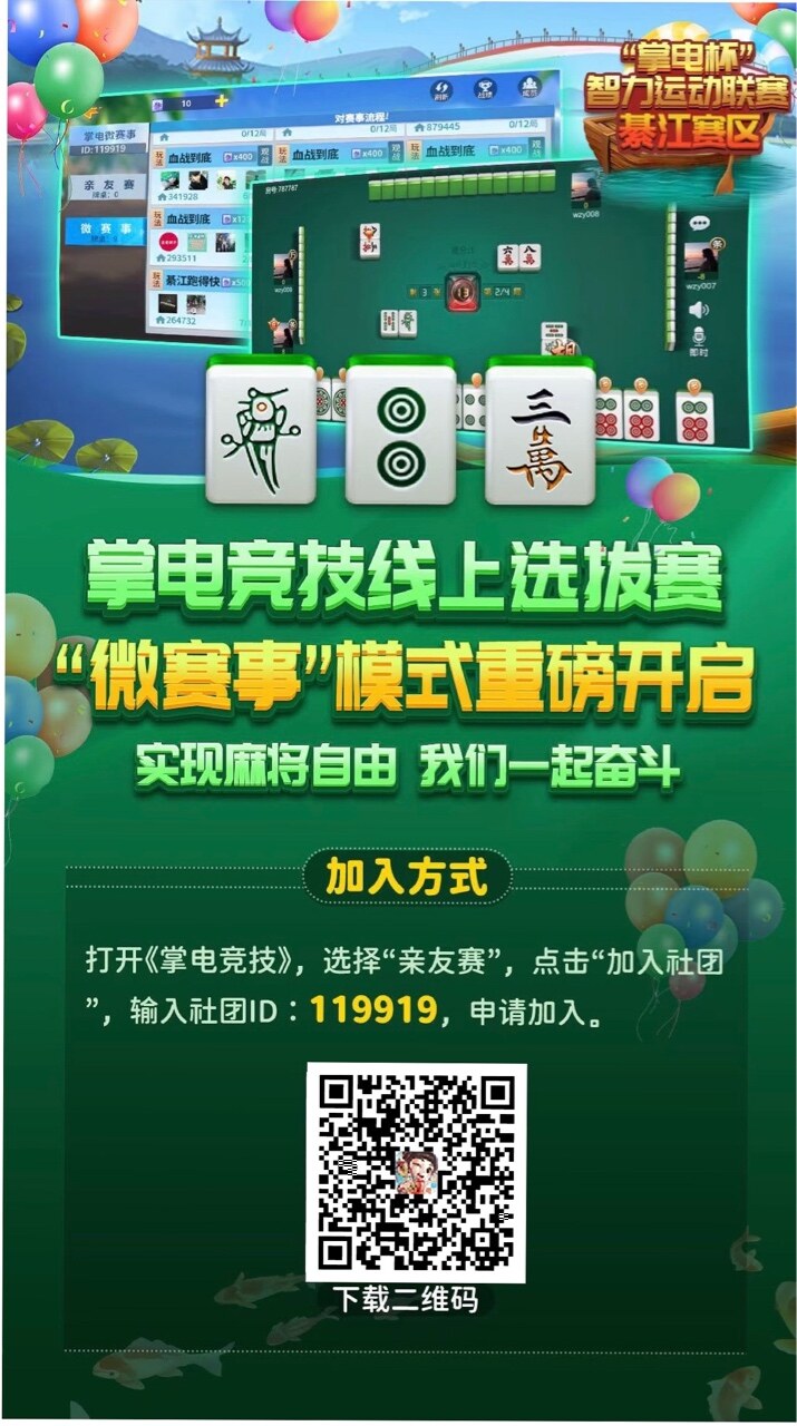 綦江麻将,成麻,跑得快 正规合法,无押金,无跑包。 可大可小,玩多少自己决定。
