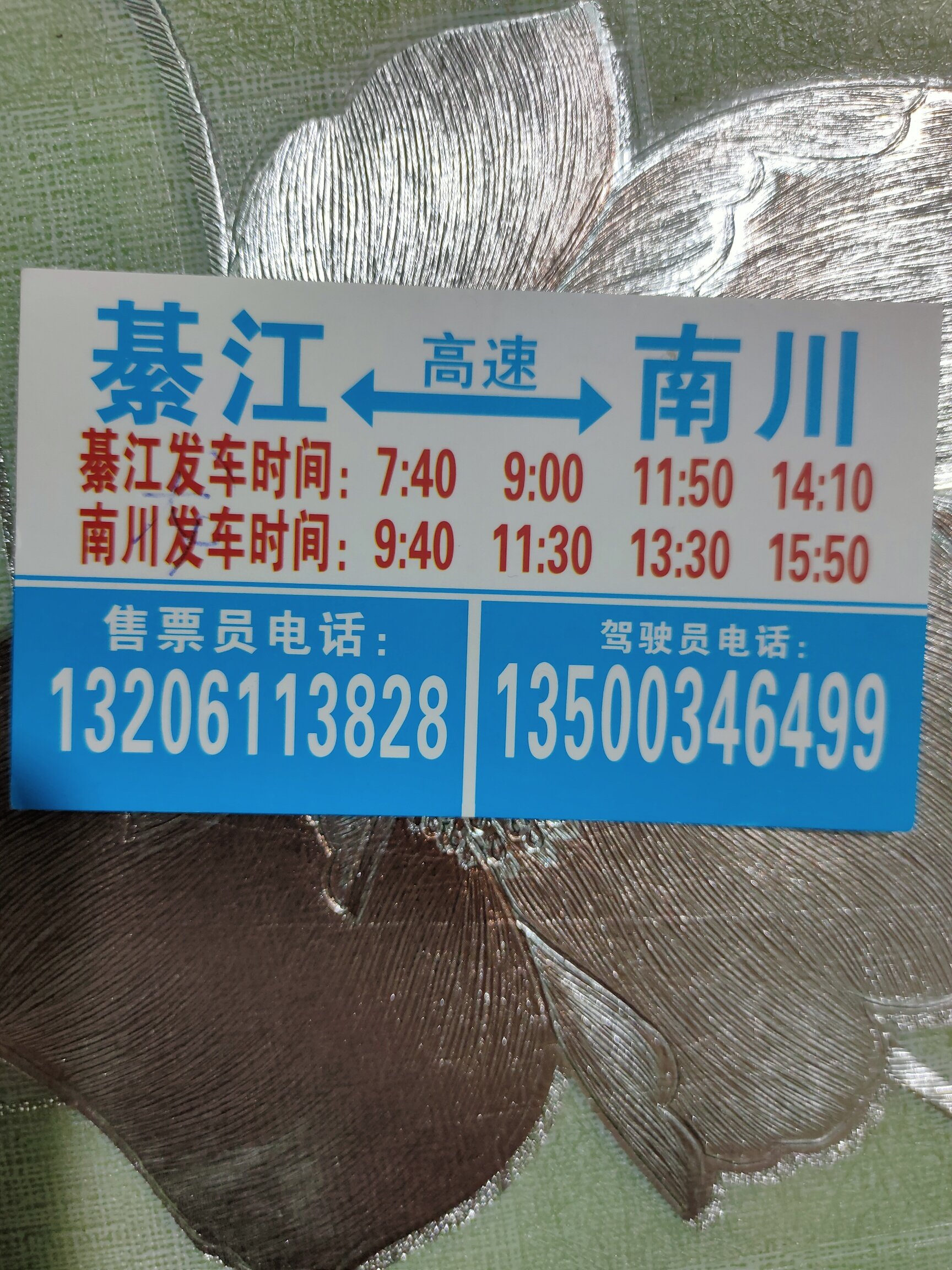 通知綦江发往南川的班车于2021年12月11日迁至通惠新车站发车请广大旅客相互转告各自安排好出行时间咨询电话13251381499