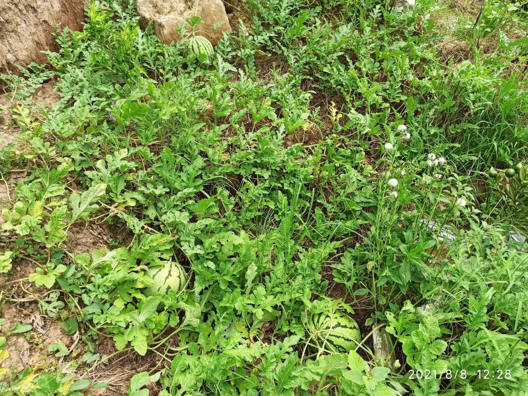 没施肥,老妈就在柑子树中间种了包谷,行距间种了豆子