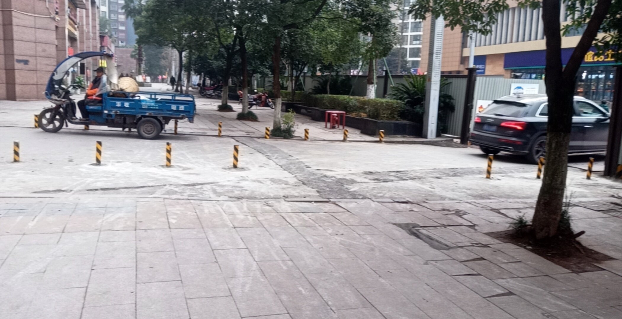 人行道既然要被画线停车就不该安透水砖,直接一次弄好不行吗,非要坏了补,补了修